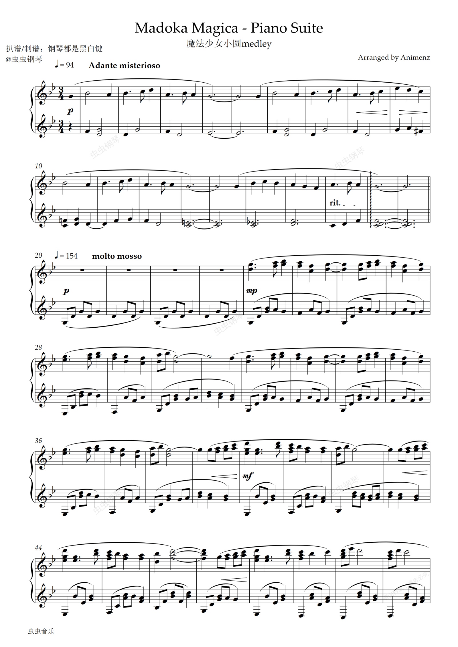 [Animenz版] - 魔法少女小圆- Madoka Magica - Piano Medley