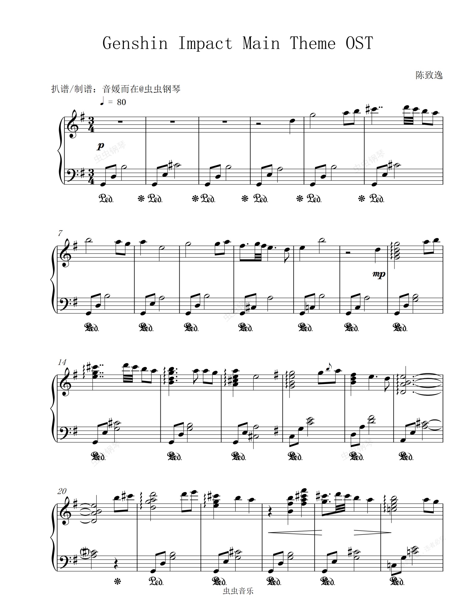 钢琴谱:[原神登陆界面BGM]Genshin Impact Main Theme OST