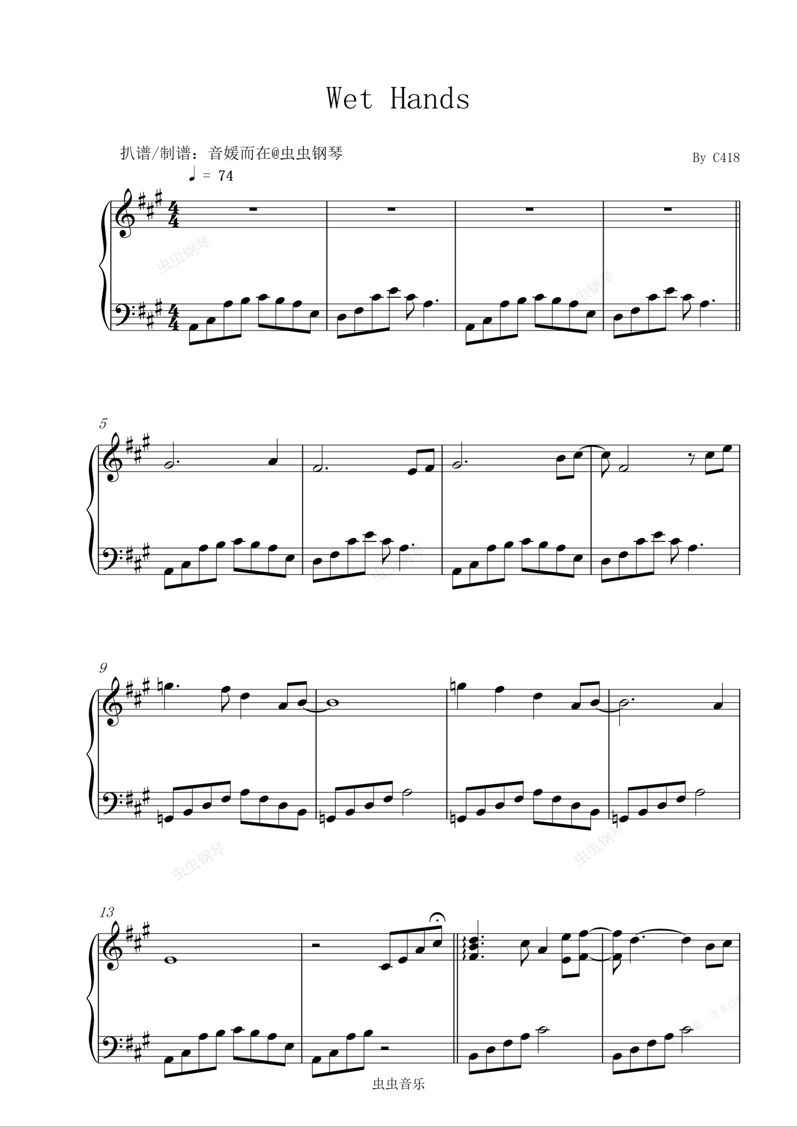 钢琴谱:「我的世界」Minecraft|Wet Hands