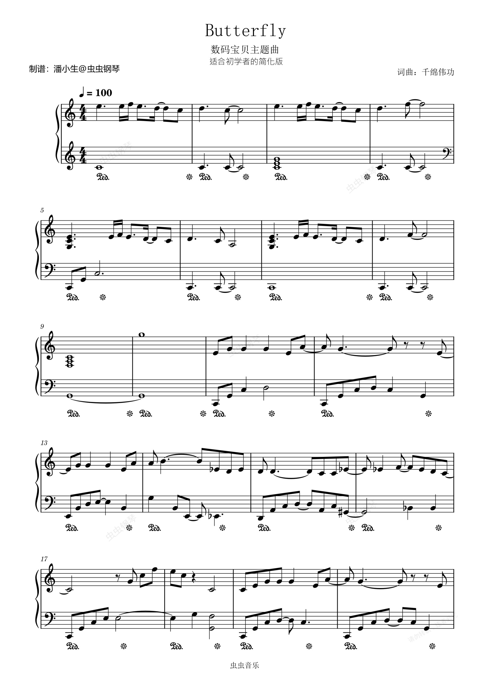 钢琴谱:《Butter-Fly》初学者优选,C大调简单版,数码宝贝主题曲butterfly,和田光司,独奏谱