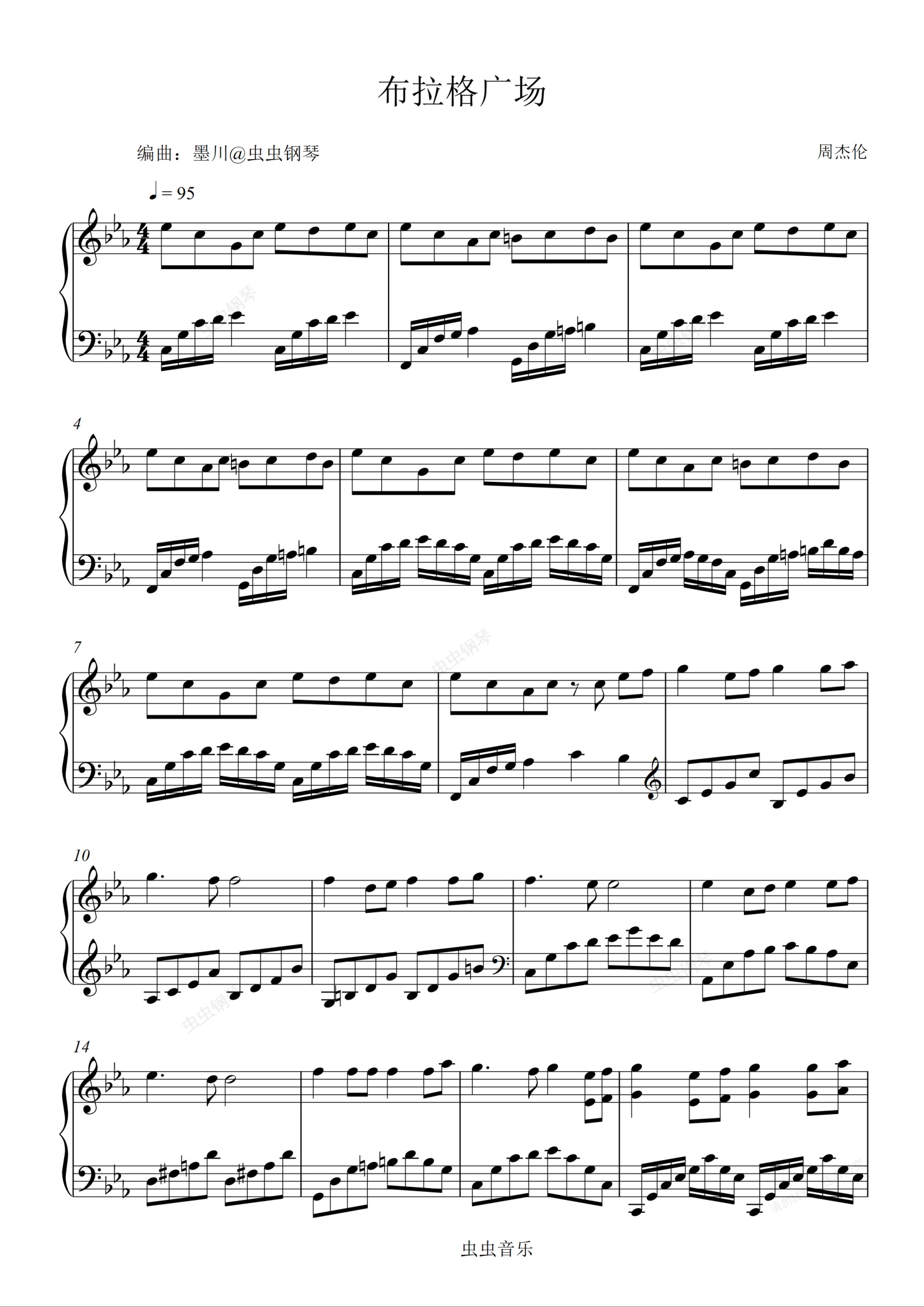 钢琴谱:布拉格广场—蔡依林—降E调