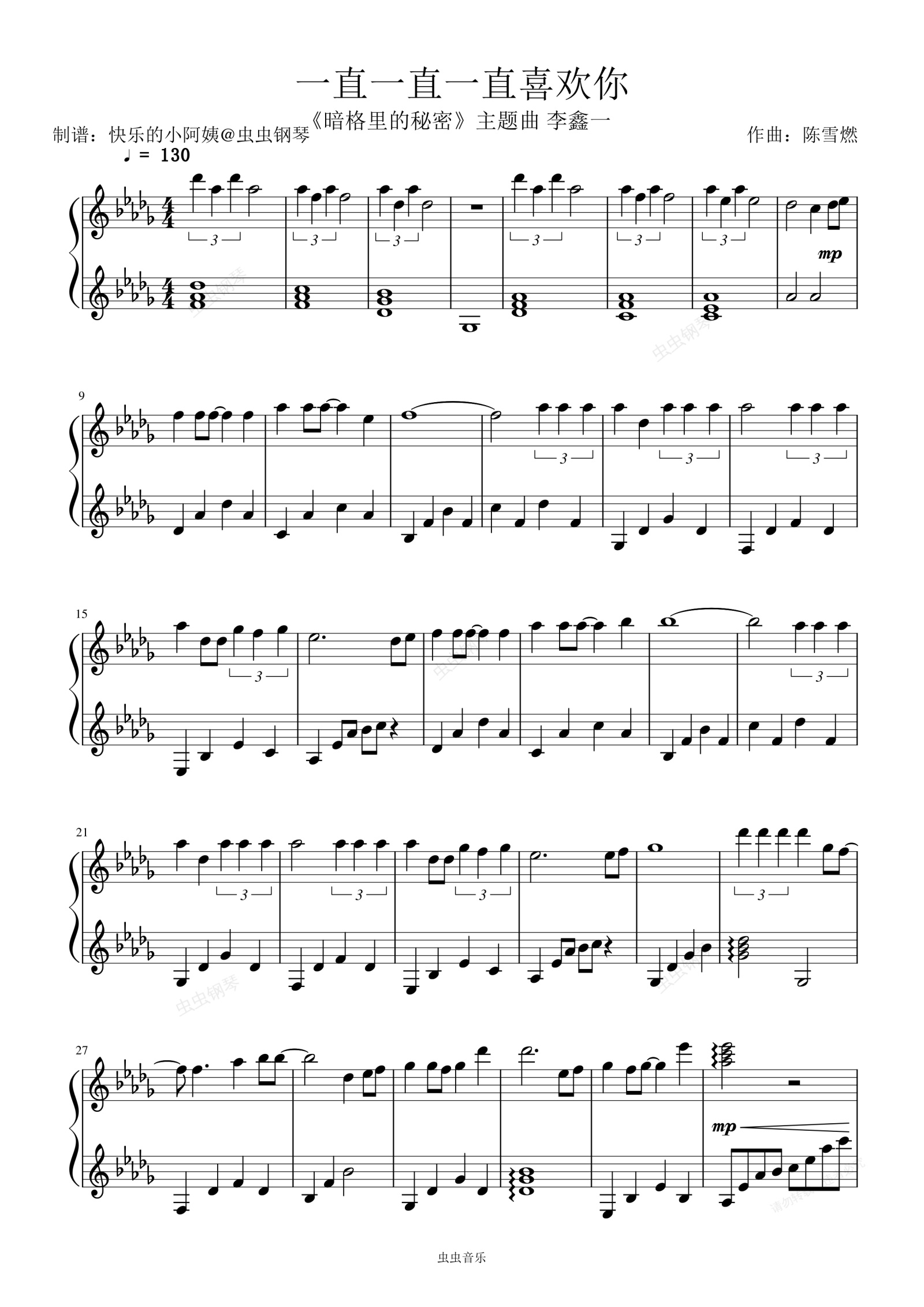 钢琴谱:一直一直一直喜欢你 - 李鑫一