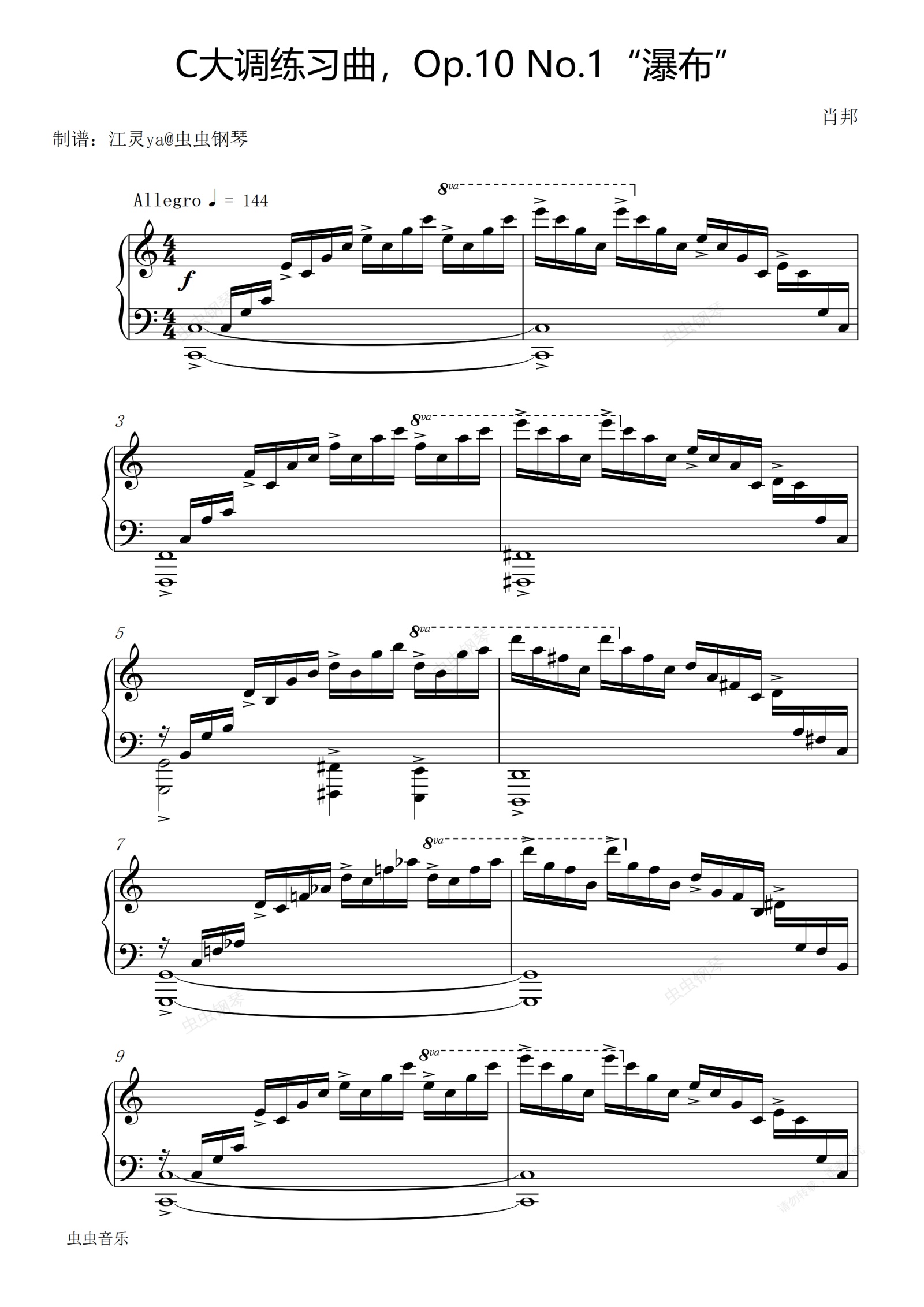 钢琴谱:C大调练习曲,Op.10 No.1“瀑布”