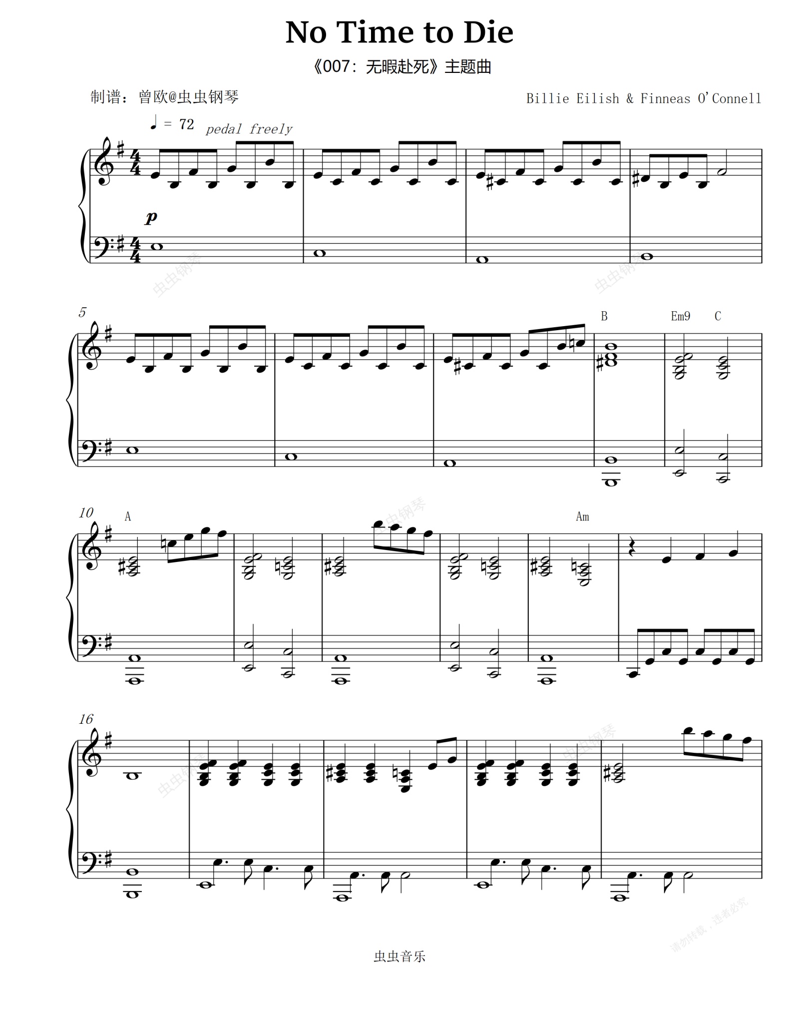 No Time To Die - Billie Eilish【免费伴奏谱】(《007:无暇赴死》主题曲)
