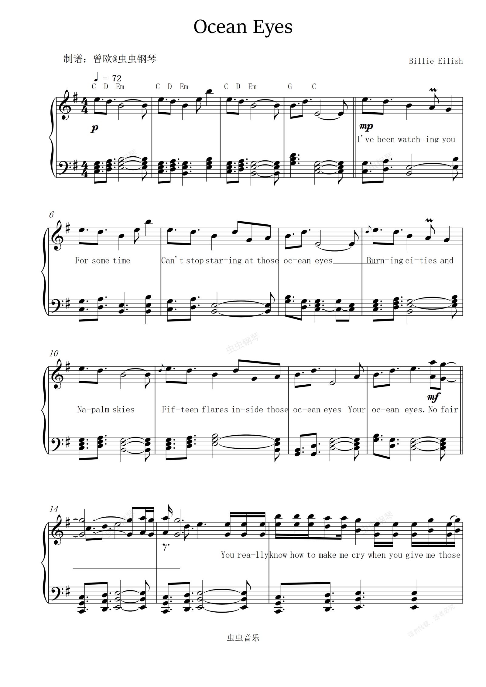 Ocean Eyes - Billie Eilish (原版带歌词)『我朝向你海洋般的双眼,投掷我哀伤的网』
