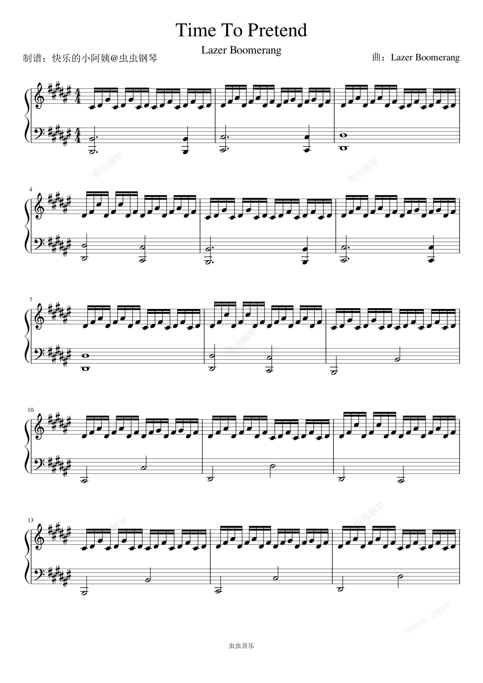 钢琴谱:Time To Pretend(Original),别名《伪装时刻)