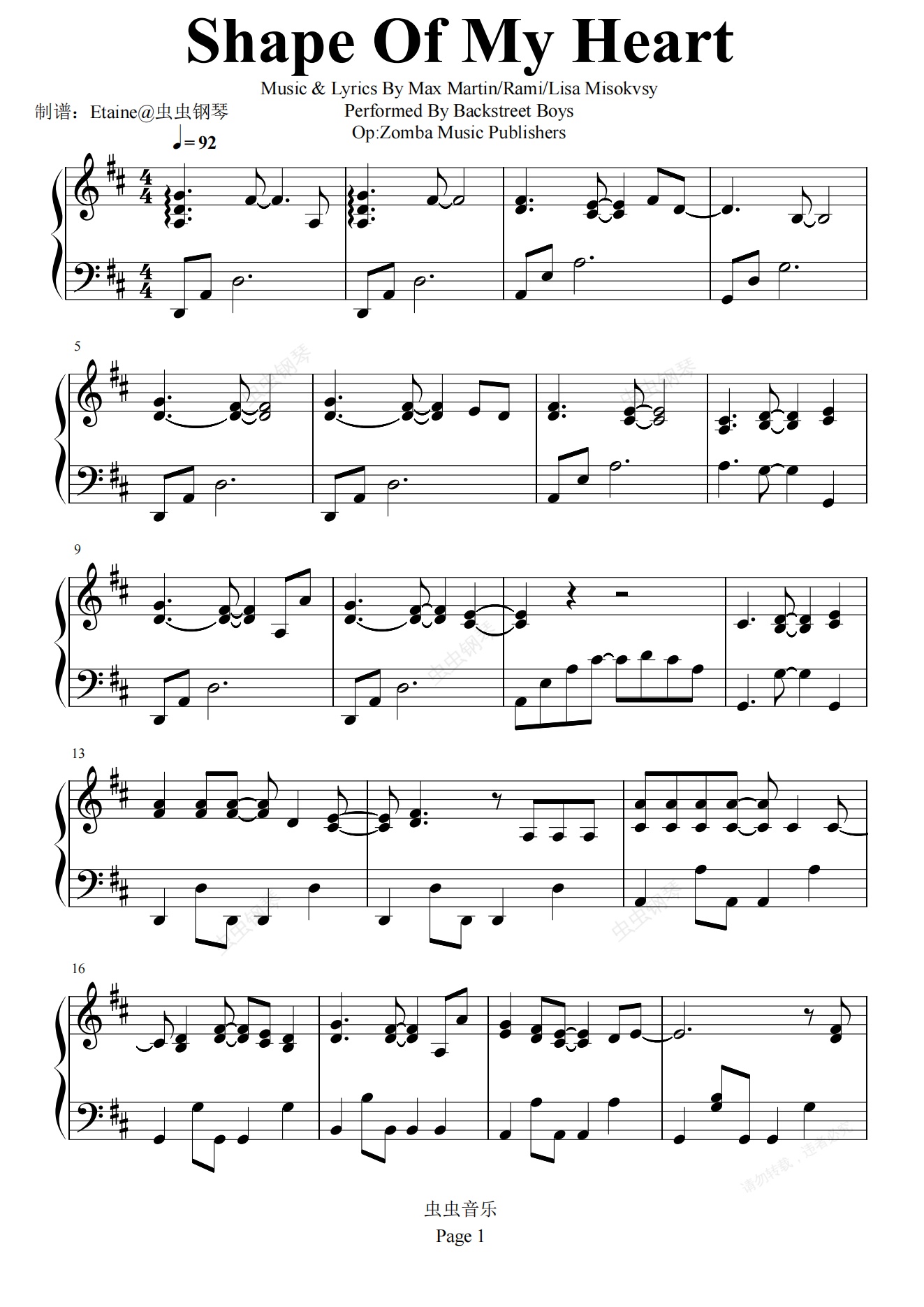 钢琴谱:Backstreet Boys《Shape Of My Heart》