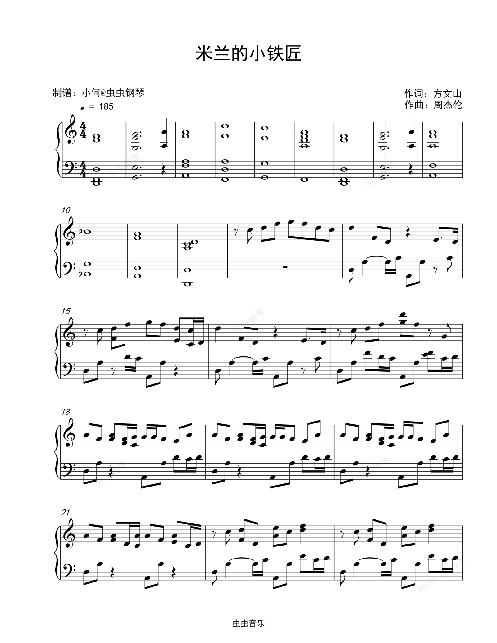 钢琴谱:米兰的小铁匠-周杰伦-弹唱版