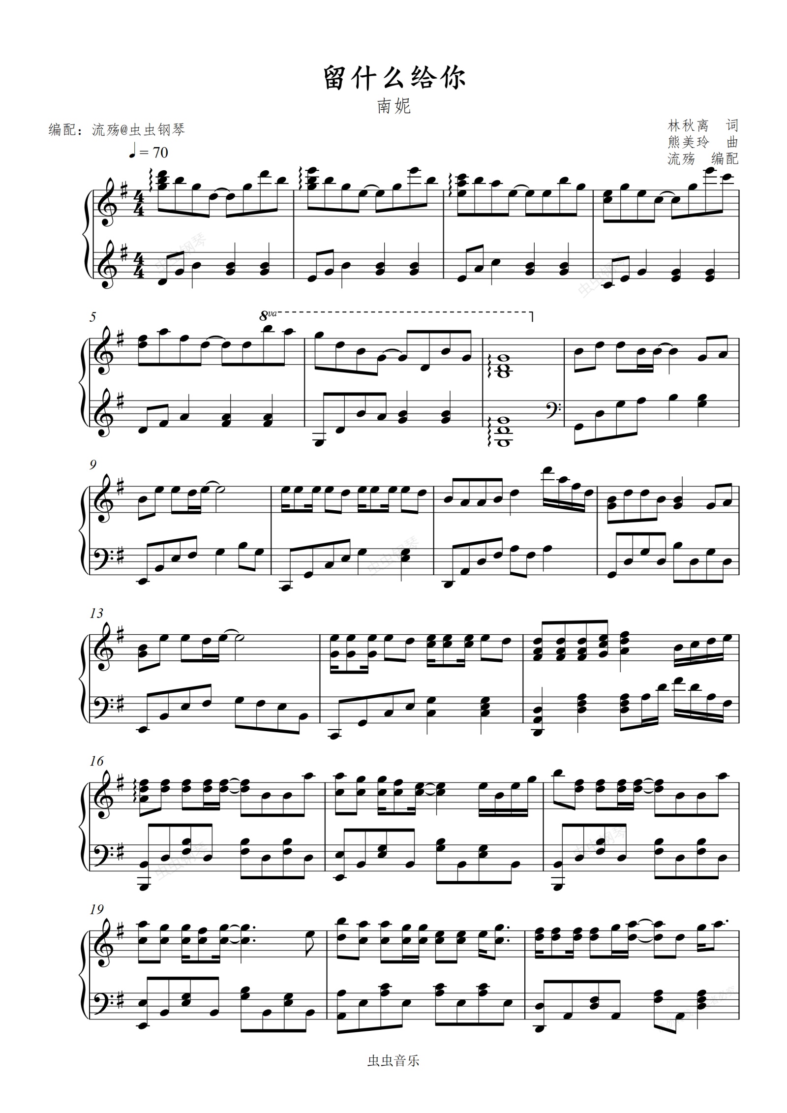 钢琴谱:留什么给你(G调版)