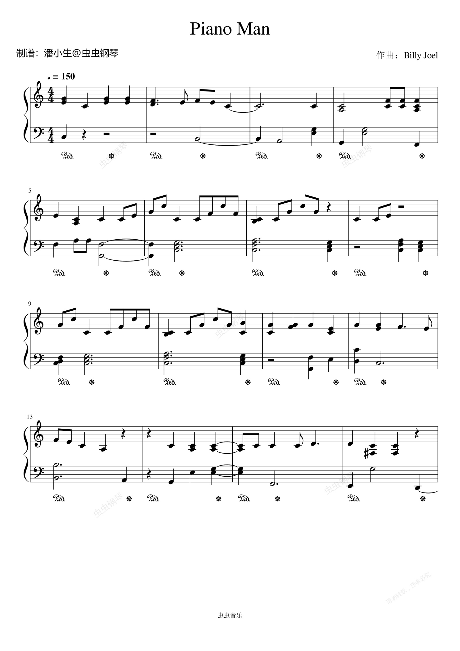 钢琴谱:Piano Man,原调完整版独奏谱,Billy Joel (比利·乔)