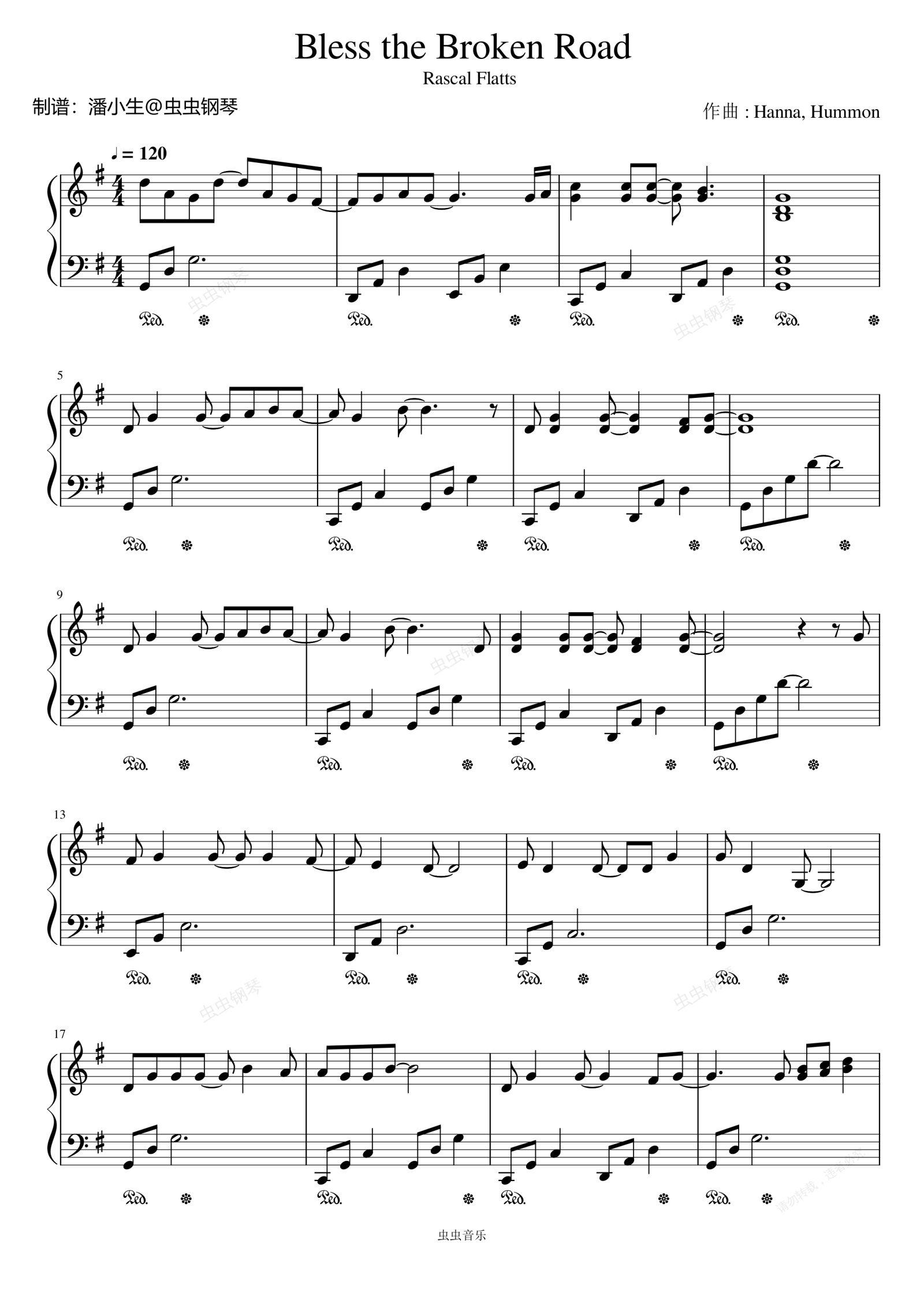 钢琴谱:Bless The Broken Road,独奏版G大调,Rascal Flatts