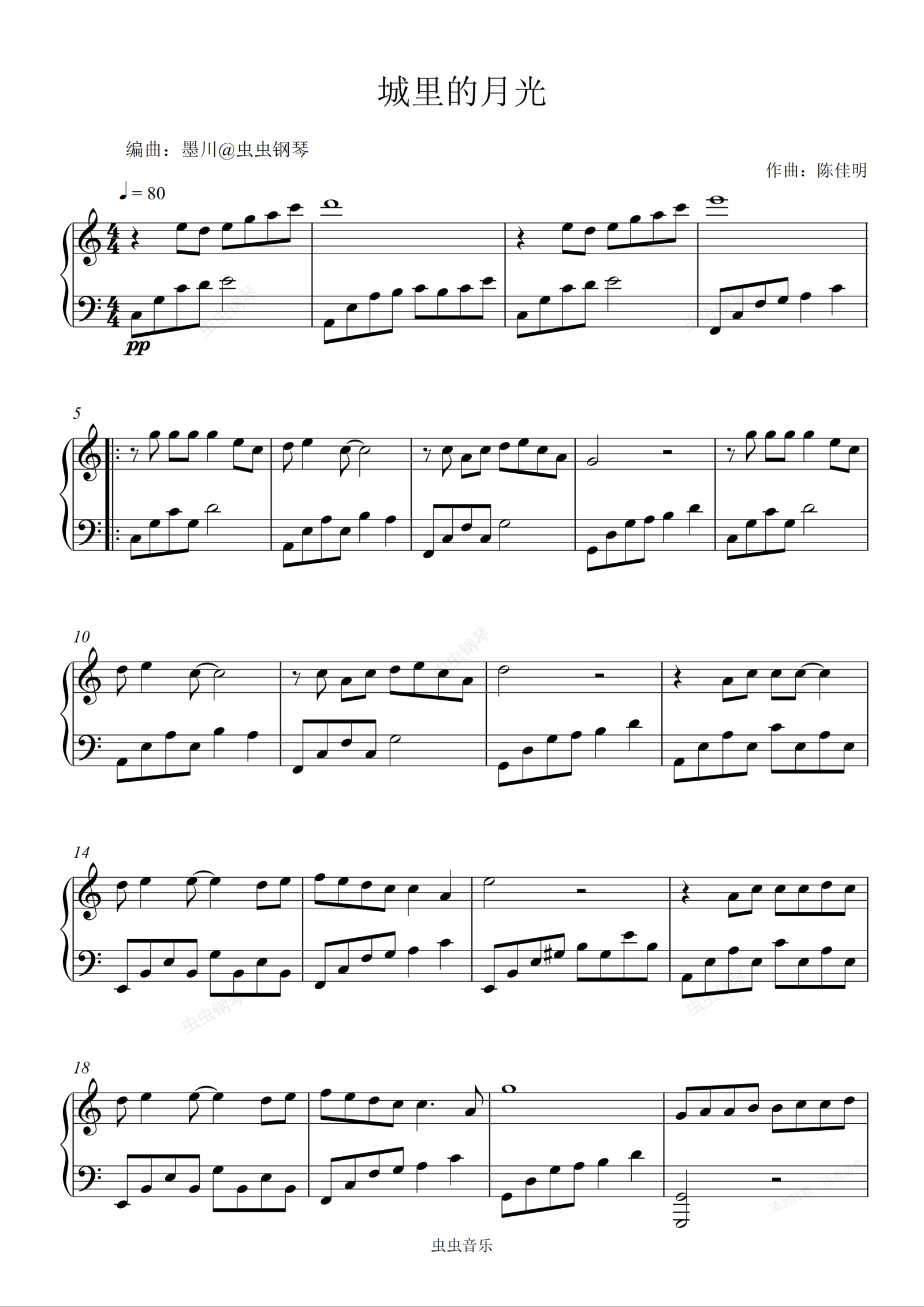 钢琴谱:城里的月光—许美静—C调简易演奏