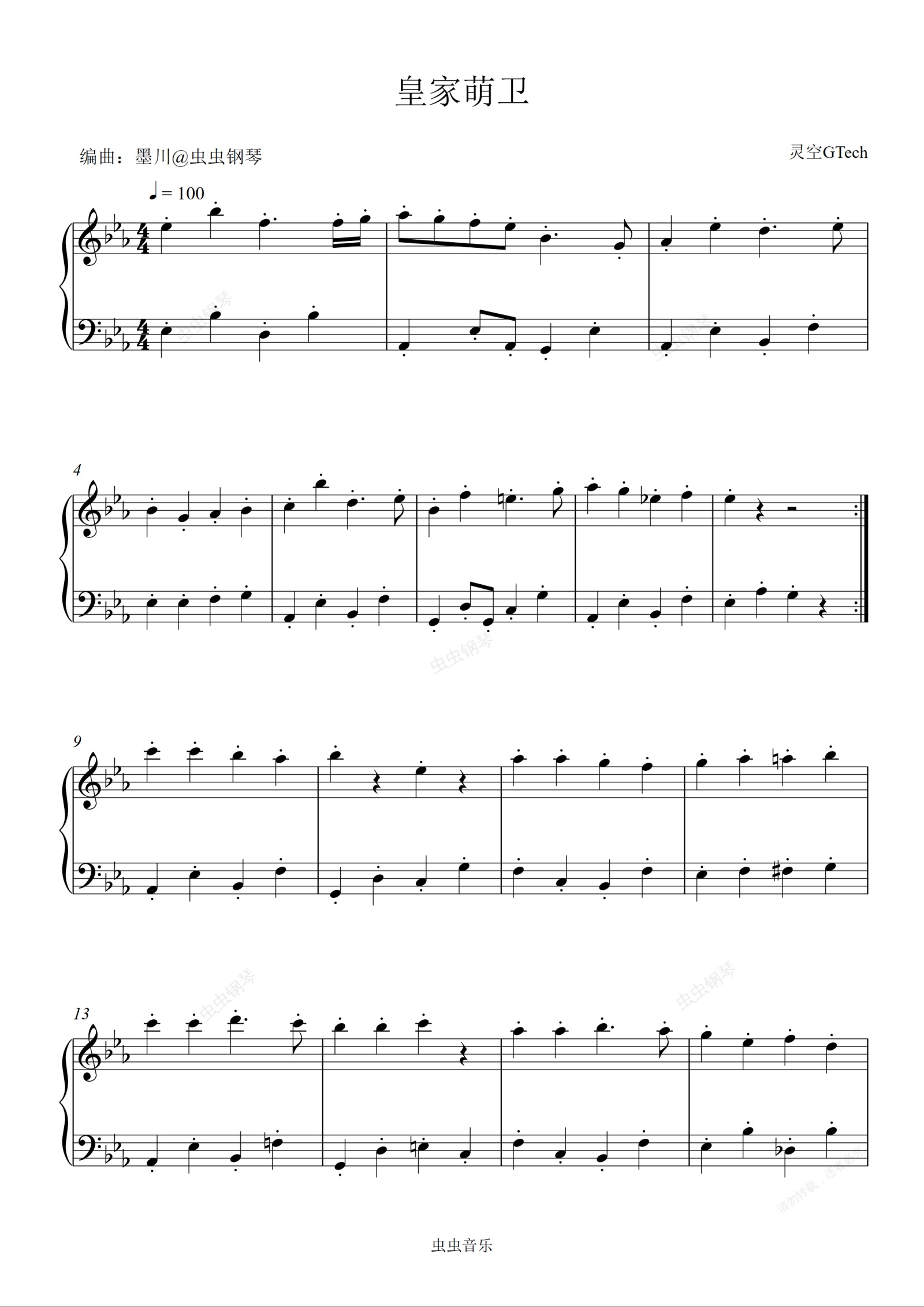 钢琴谱:初级钢琴曲—皇家萌卫—降E调断奏练习