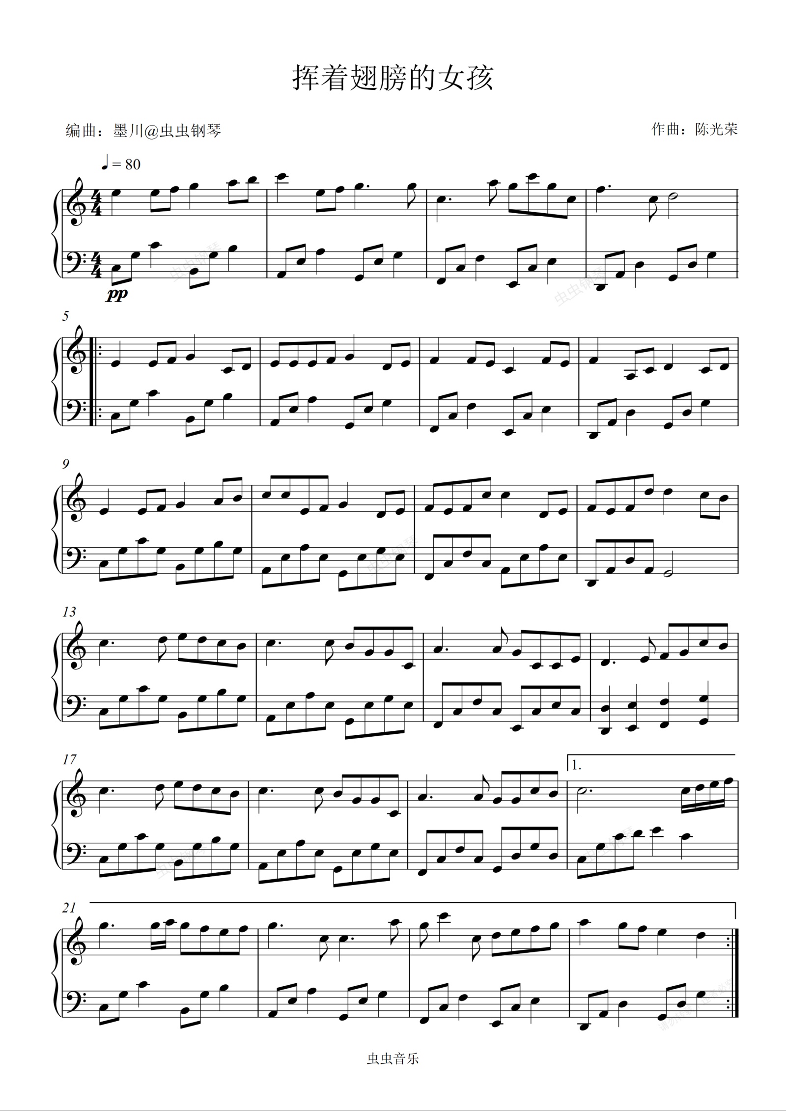 钢琴谱:挥着翅膀的女孩—容祖儿—C调简易版