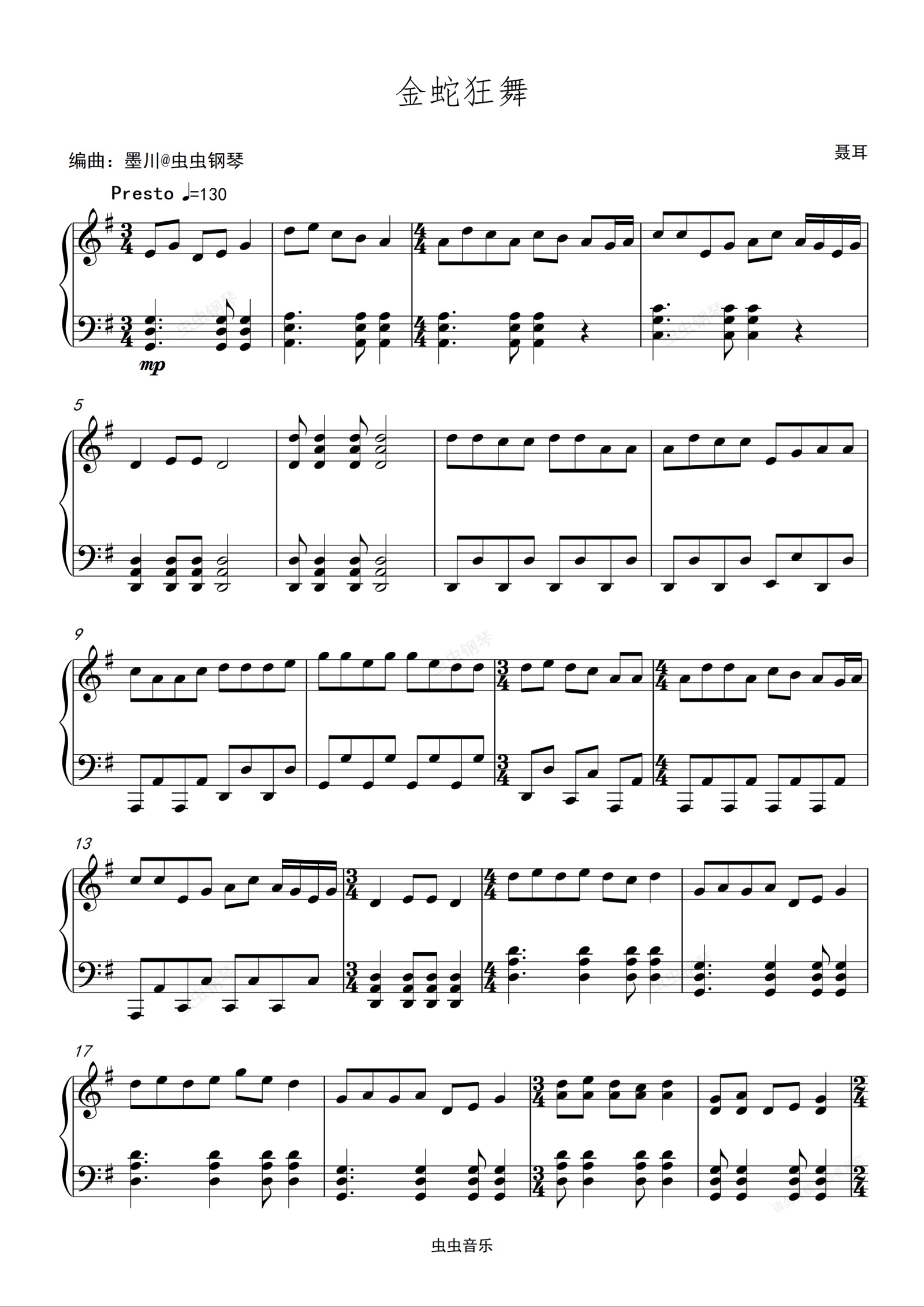 钢琴谱:金蛇狂舞—聂耳—G调演奏
