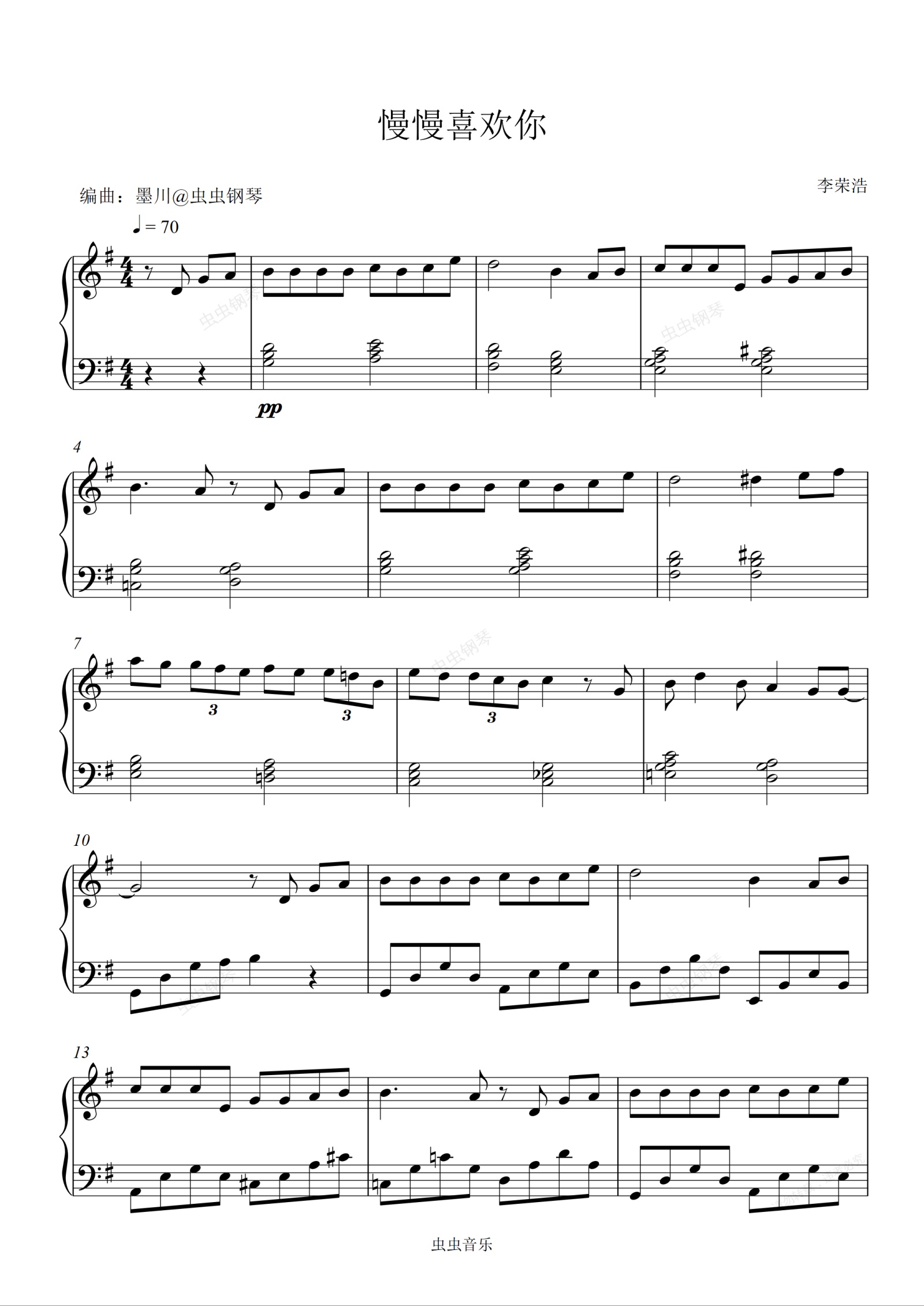 钢琴谱:慢慢喜欢你—莫文蔚—G调简易版