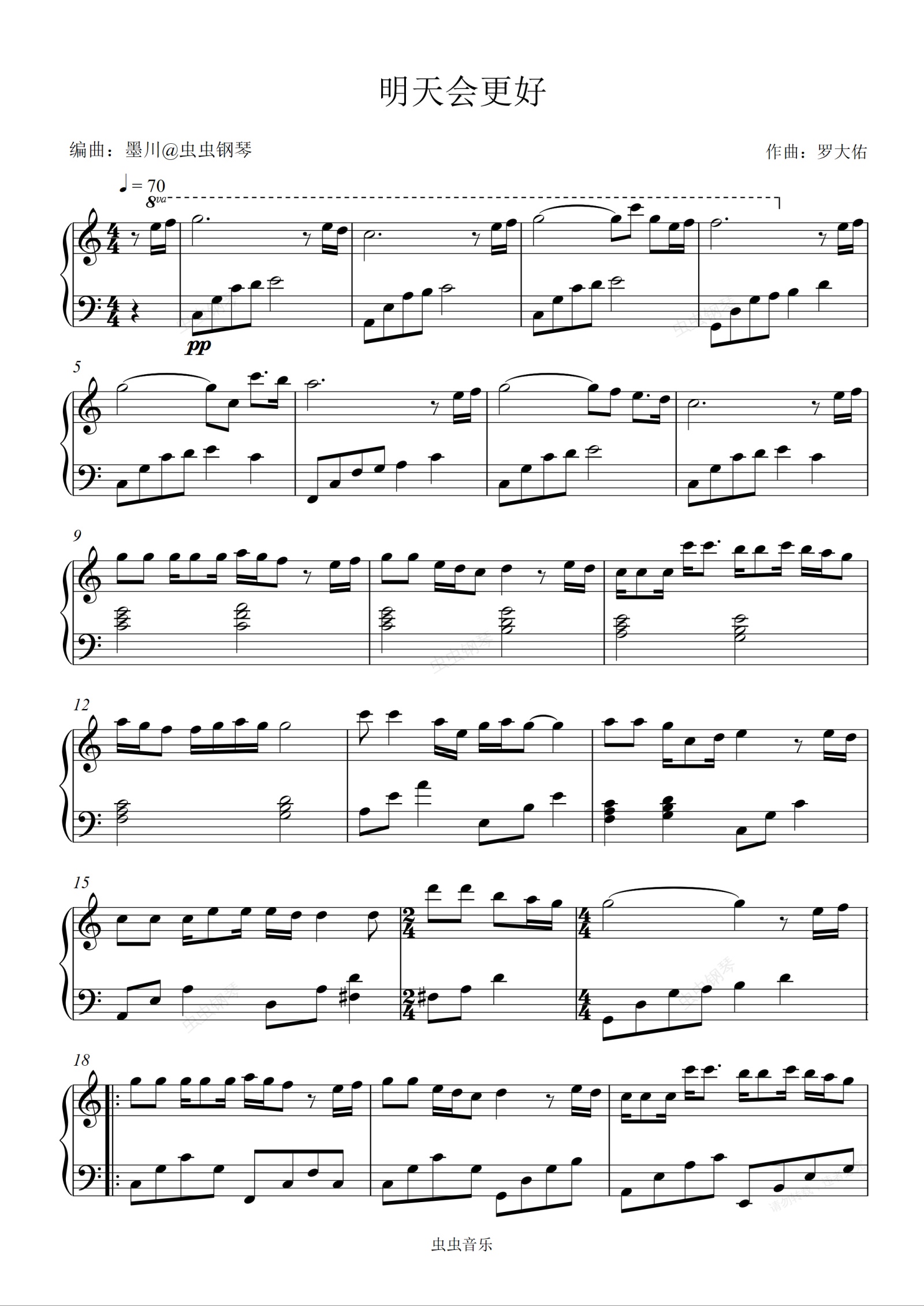 钢琴谱:明天会更好—罗大佑—C调进阶版