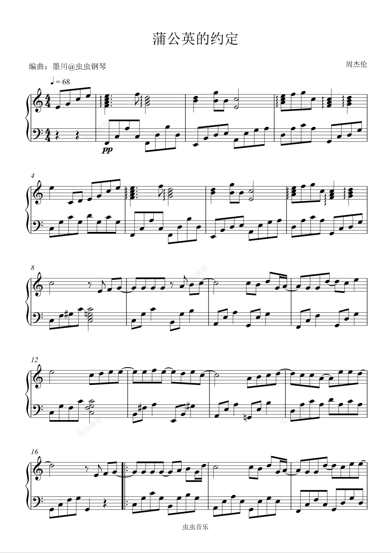 钢琴谱:蒲公英的约定—周杰伦—C调进阶版