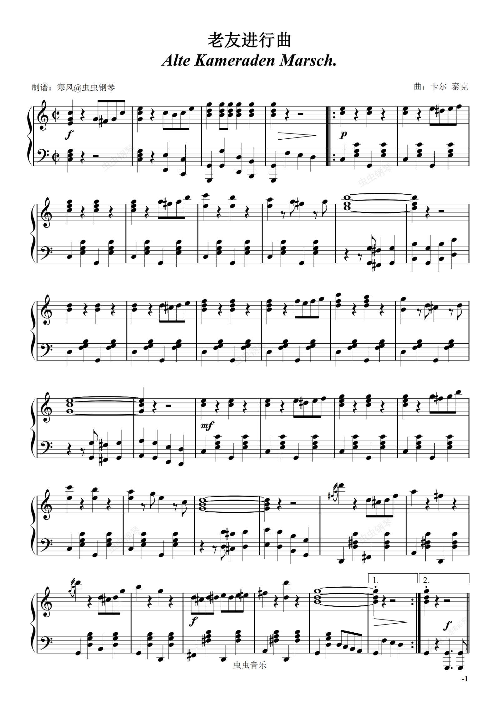 钢琴谱:老友进行曲C调简化版