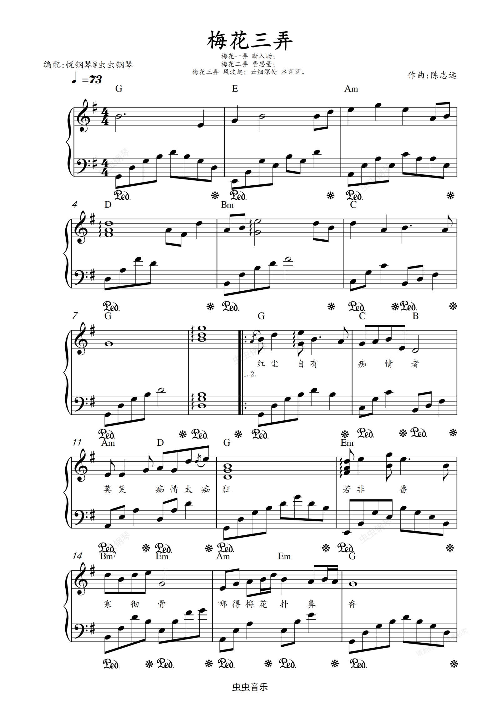 钢琴谱:梅花三弄 (原调版) 段落优化版