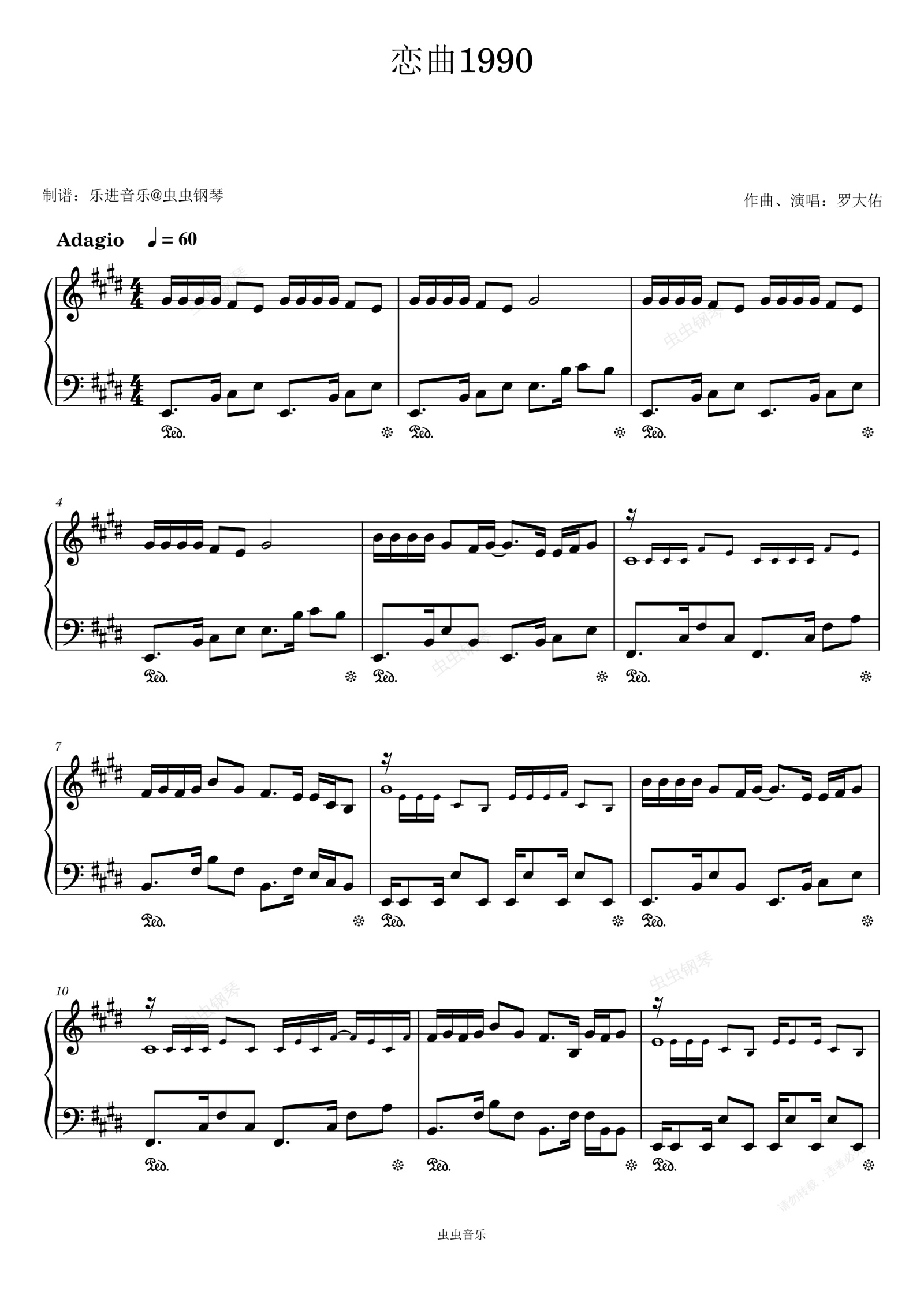 钢琴谱:恋曲1990 原调还原版
