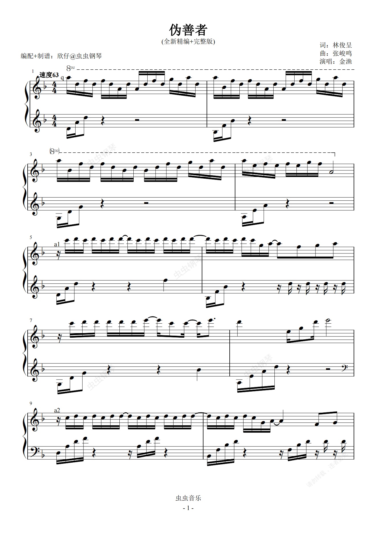钢琴谱:金渔-d《伪善者》(全新精编+完整版)
