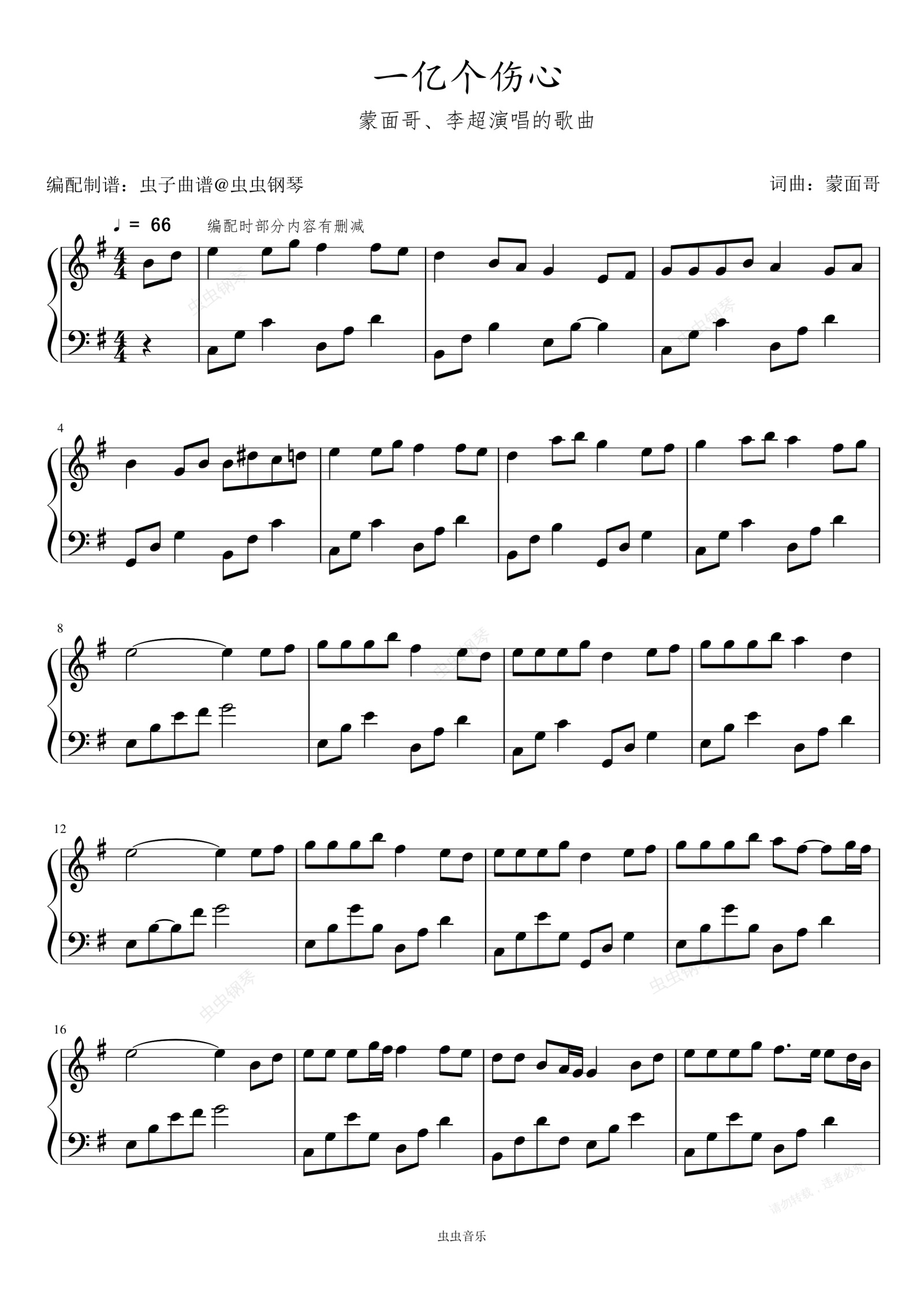 钢琴谱:一亿个伤心_G(选G大调简单编配)