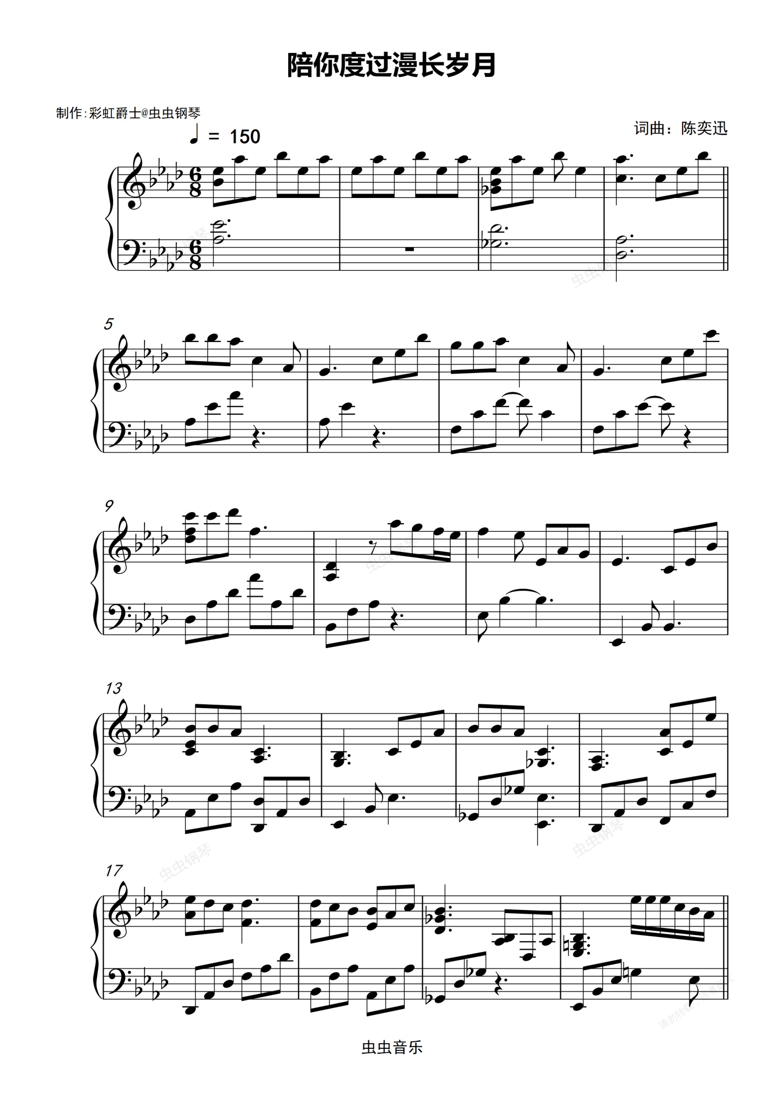 钢琴谱:陪你度过漫长岁月 陈奕迅 简单版