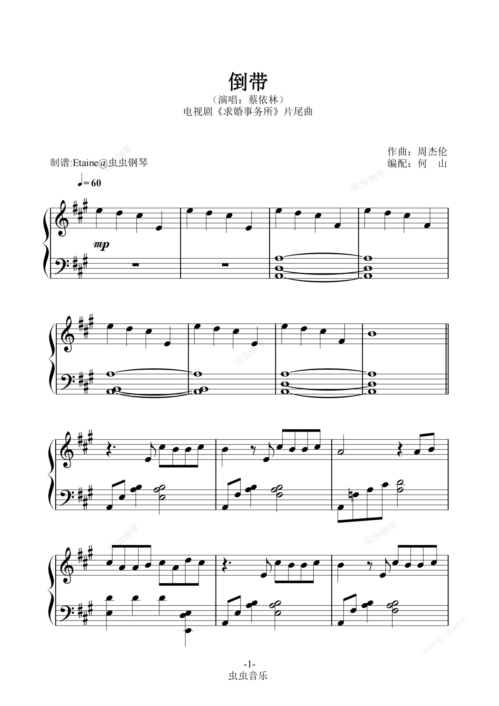 钢琴谱:倒带 (演唱:蔡依林)电视剧《求婚事务所》片尾曲