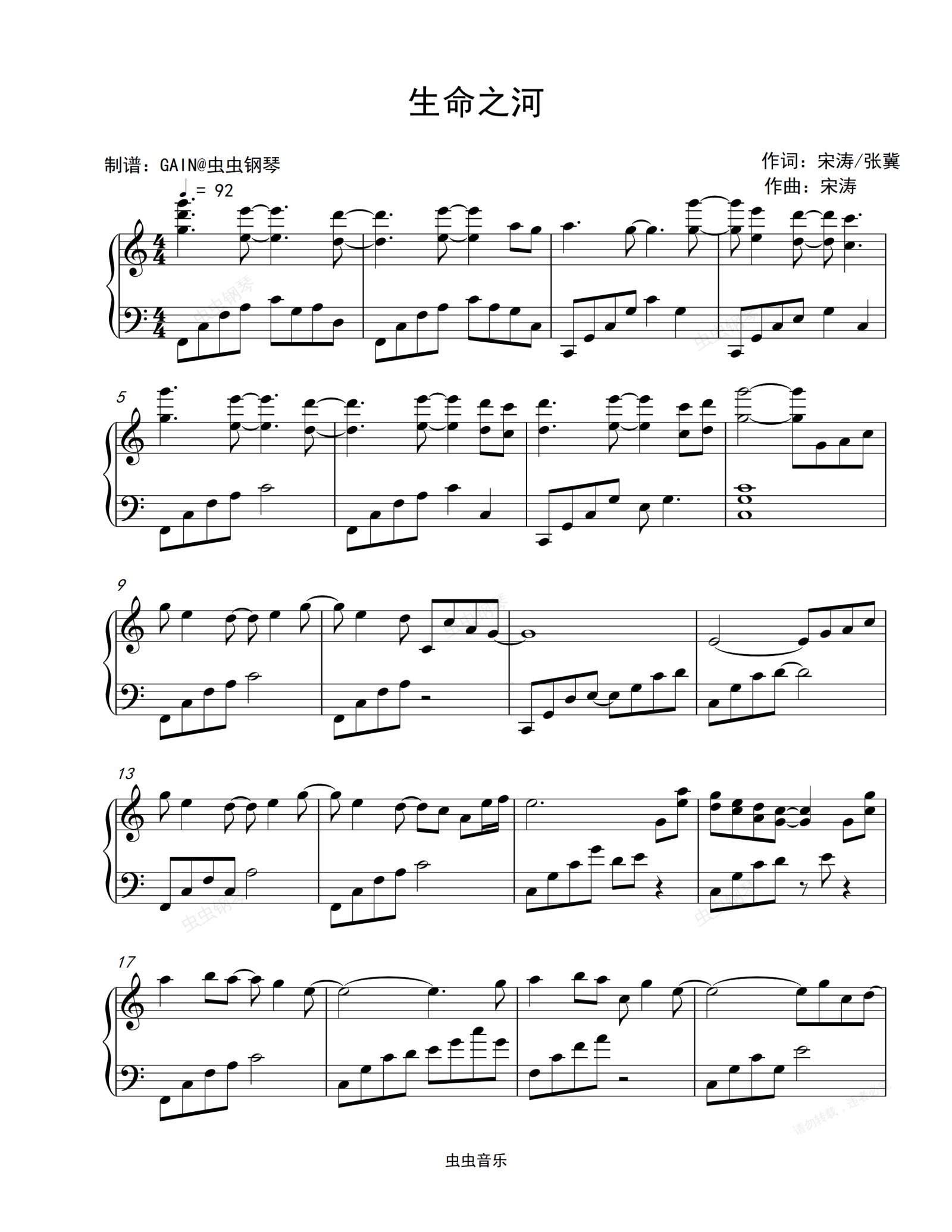 钢琴谱:生命之河-王菲-夺冠片尾曲
