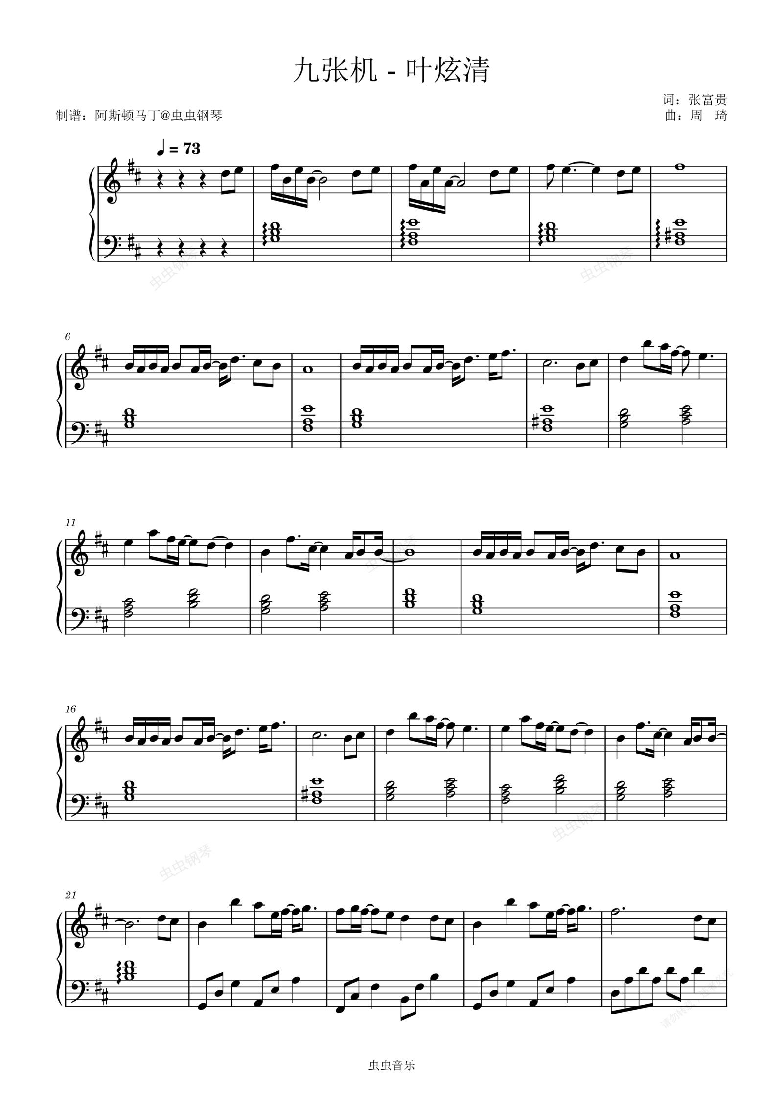钢琴谱:九张机 - 叶炫清【独奏】