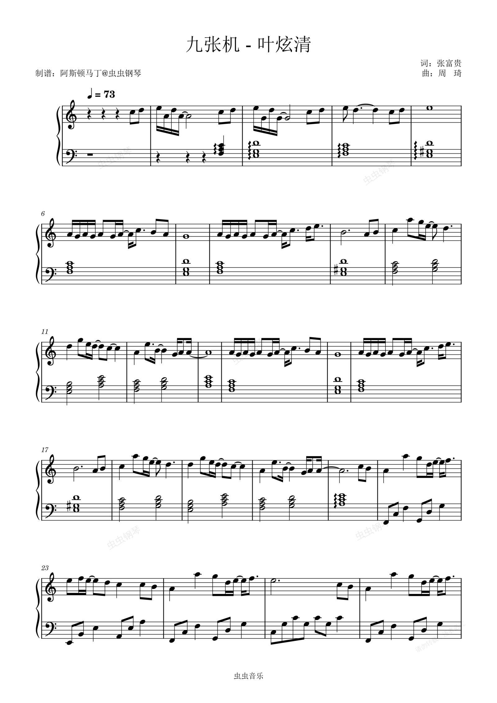 钢琴谱:九张机 - 叶炫清【独奏】