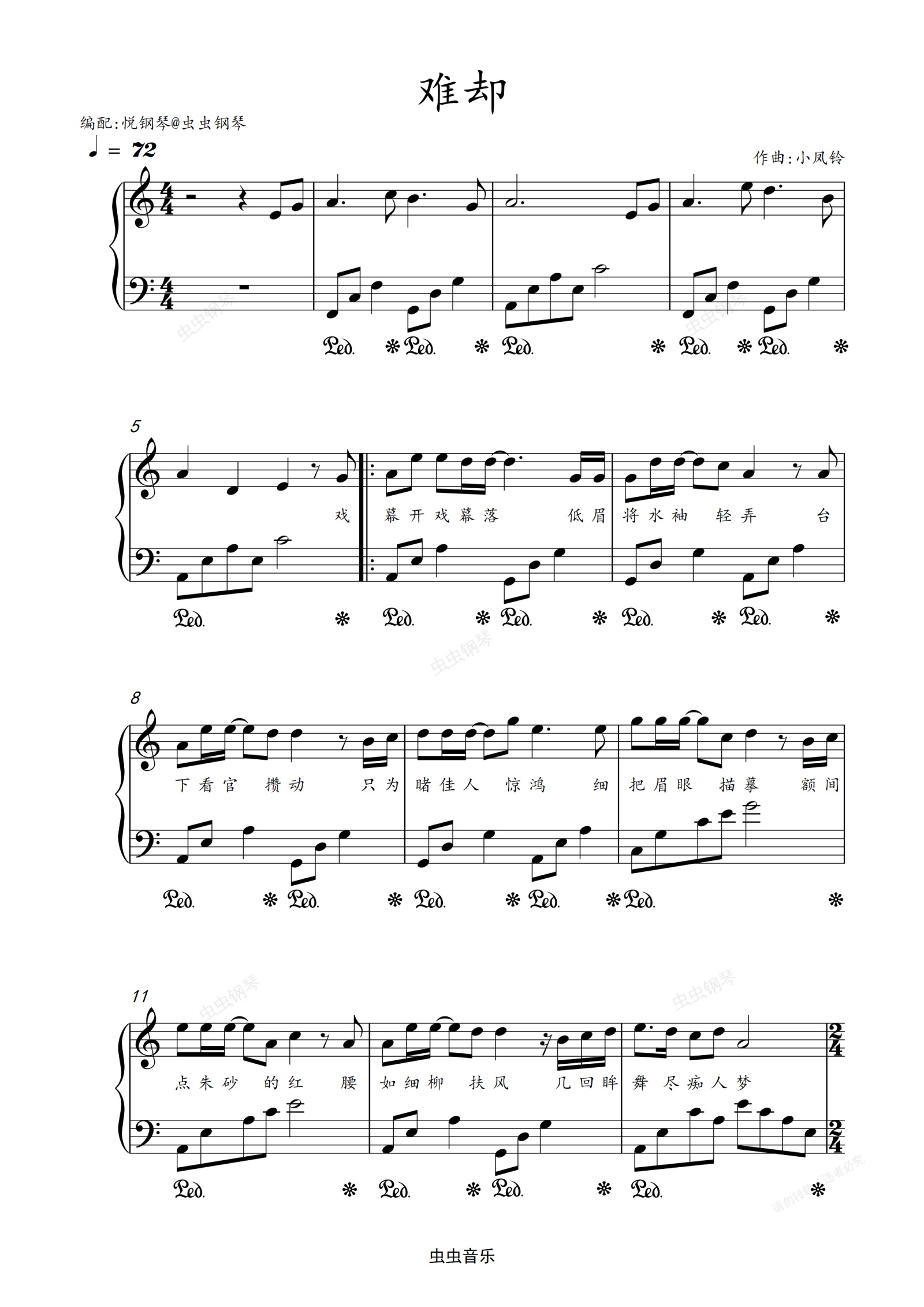 钢琴谱:难却  平生不晚