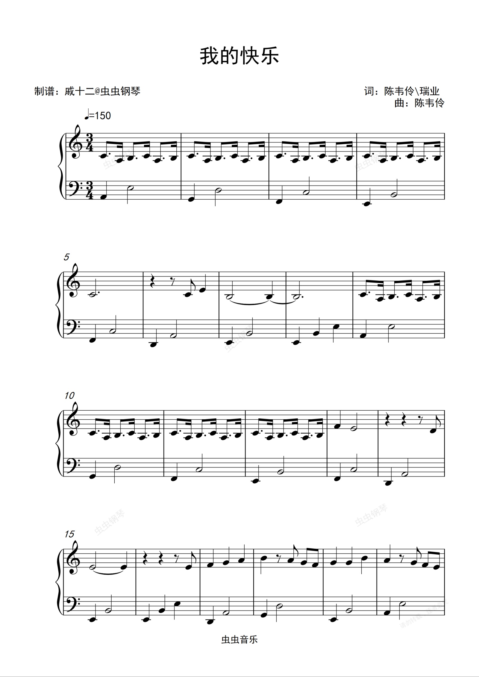 钢琴谱:我的快乐《命中注定我爱你》插曲-C调简单版