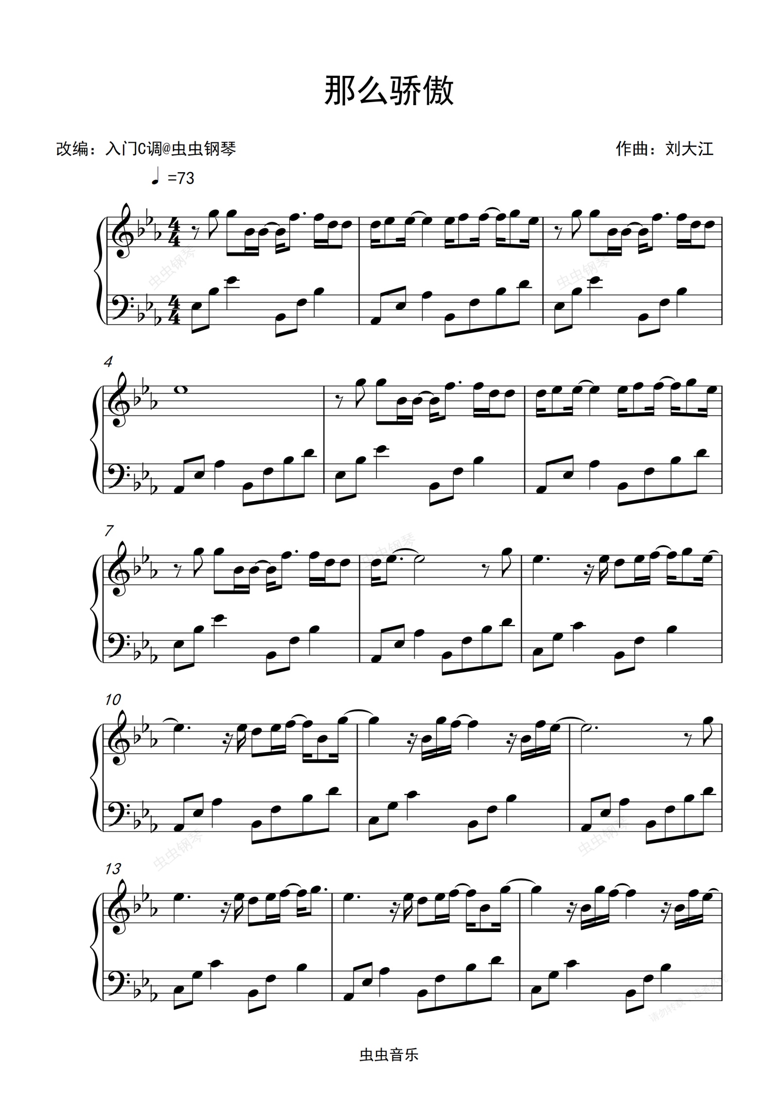 钢琴谱:金海心《难么骄傲》原调入门简单版