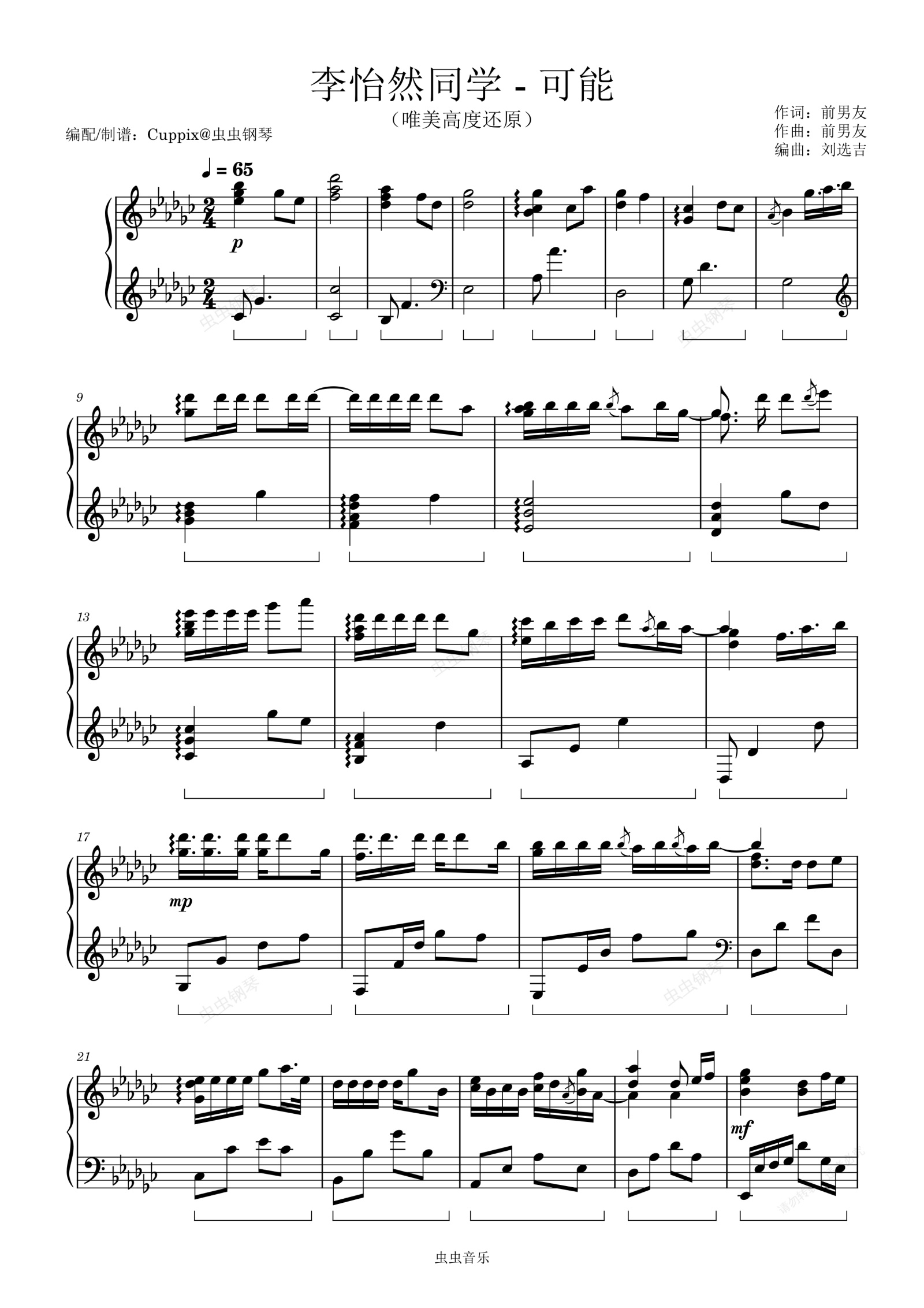 钢琴谱:李怡然同学《可能》唯美高度还原-Cuppix编配