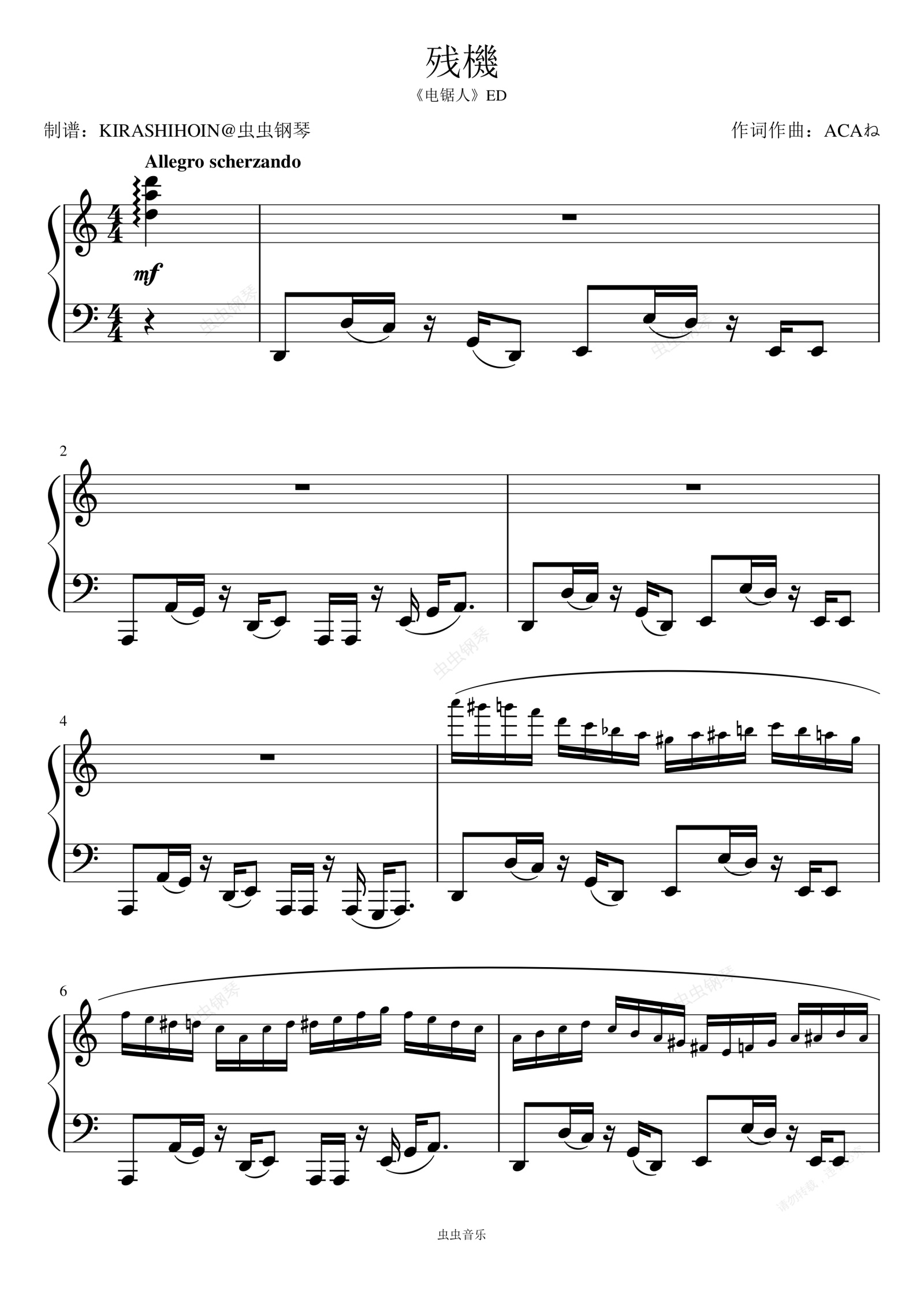 钢琴谱:残機(《电锯人》ED/片尾曲)- ずっと真夜中でいいのに。