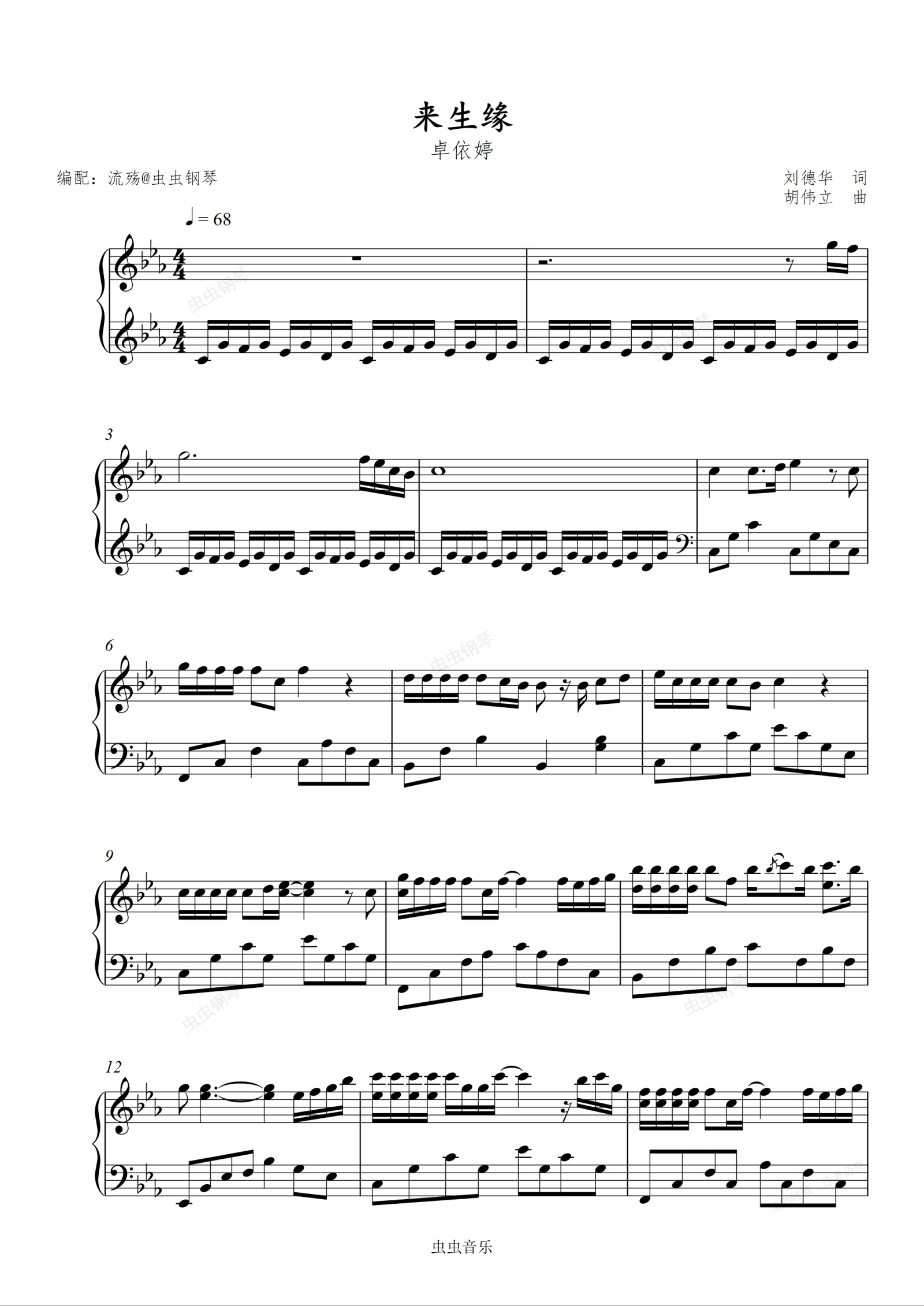 钢琴谱:来生缘