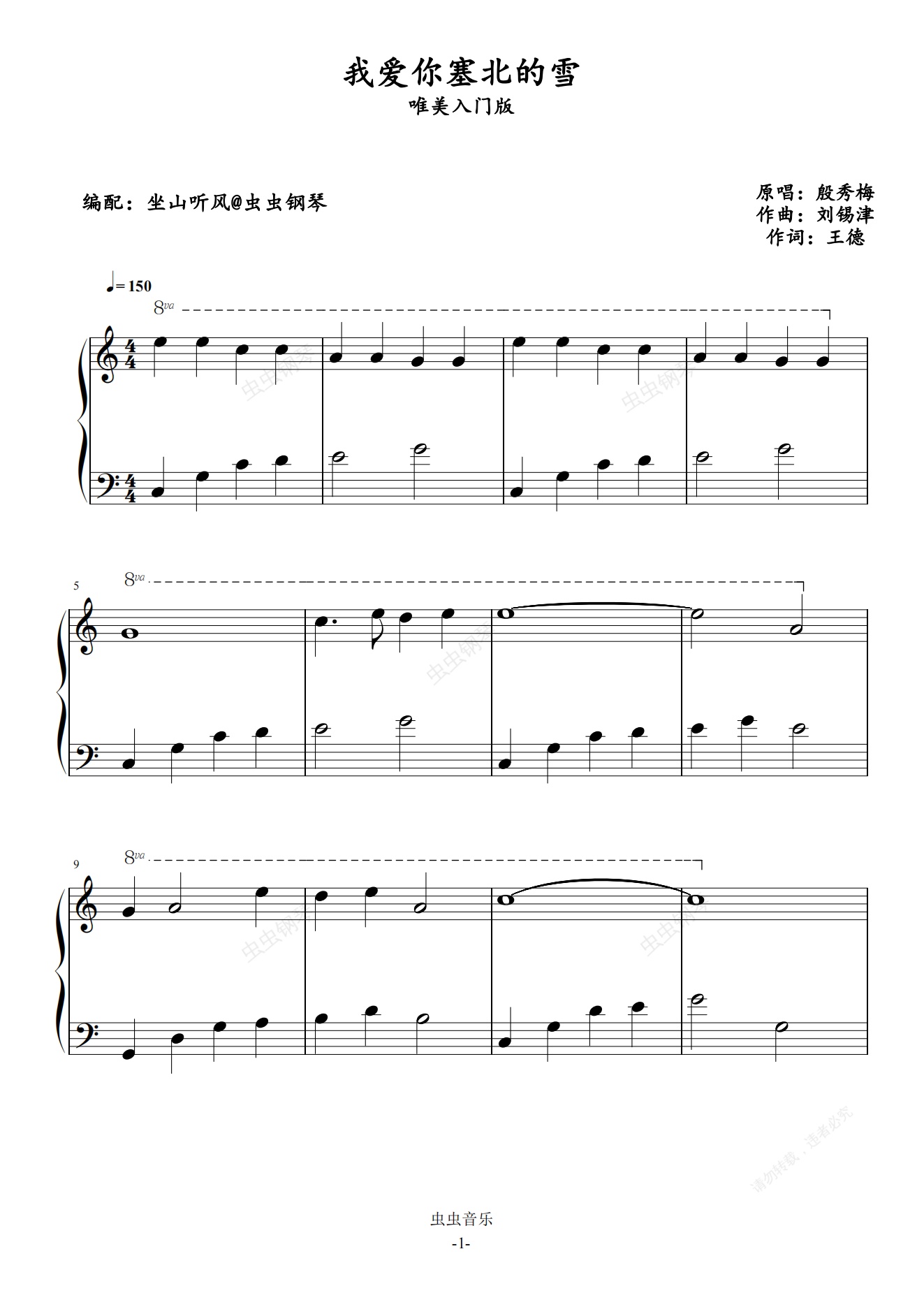 钢琴谱:我爱你塞北的雪——唯美入门版