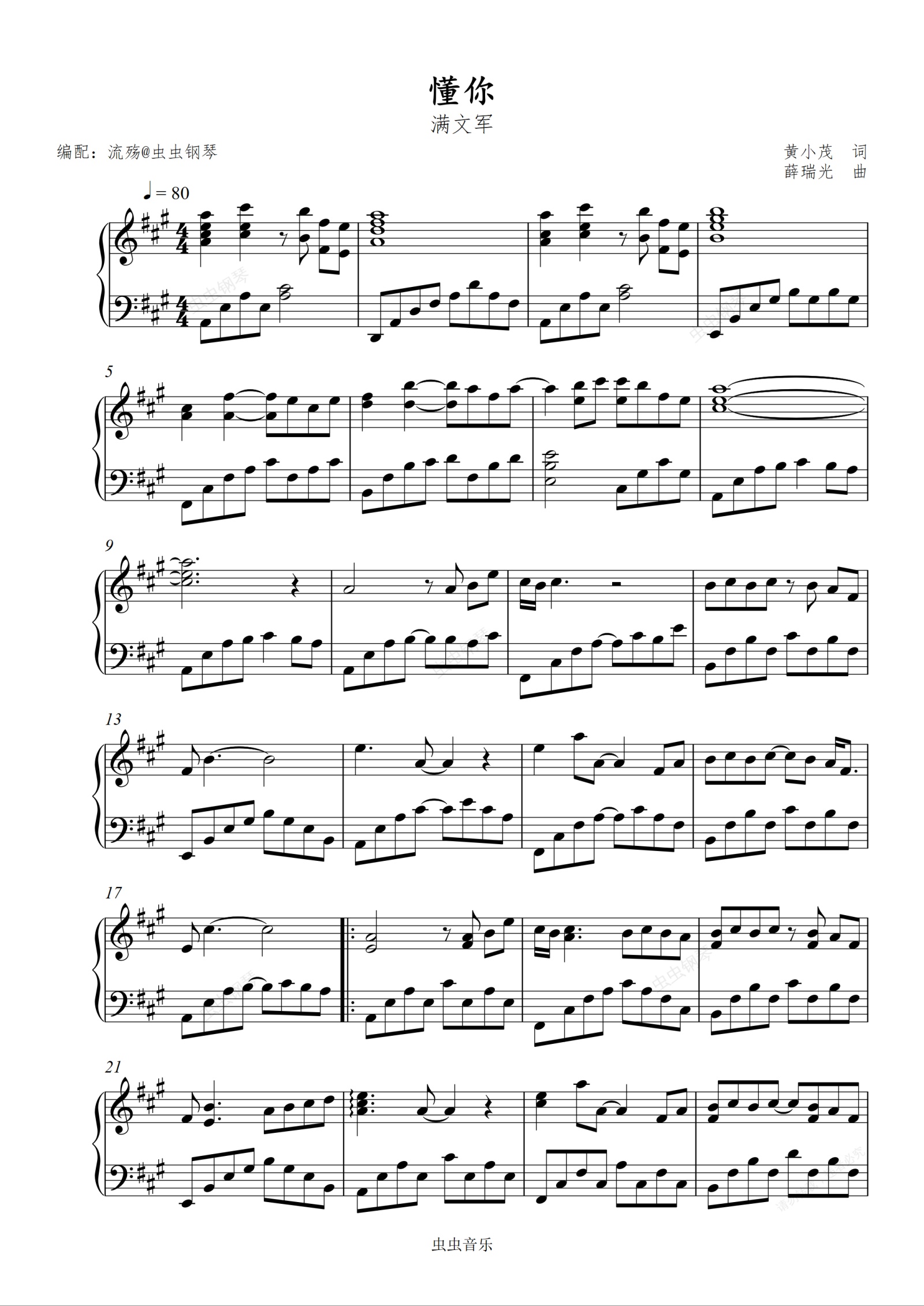 钢琴谱:懂你