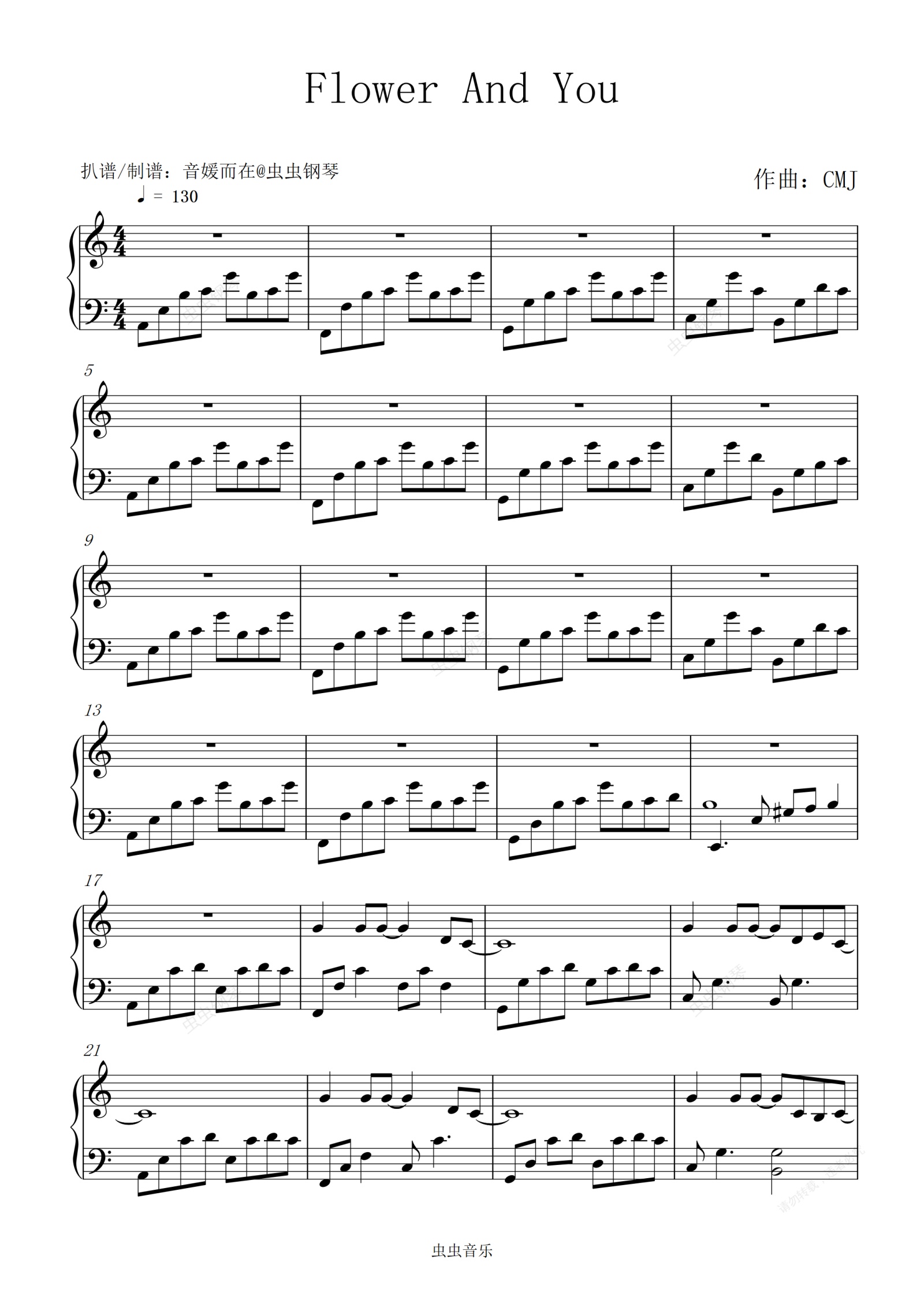钢琴谱:Flower and You - CMJ 【钢琴轻音乐 | 舒缓音乐】