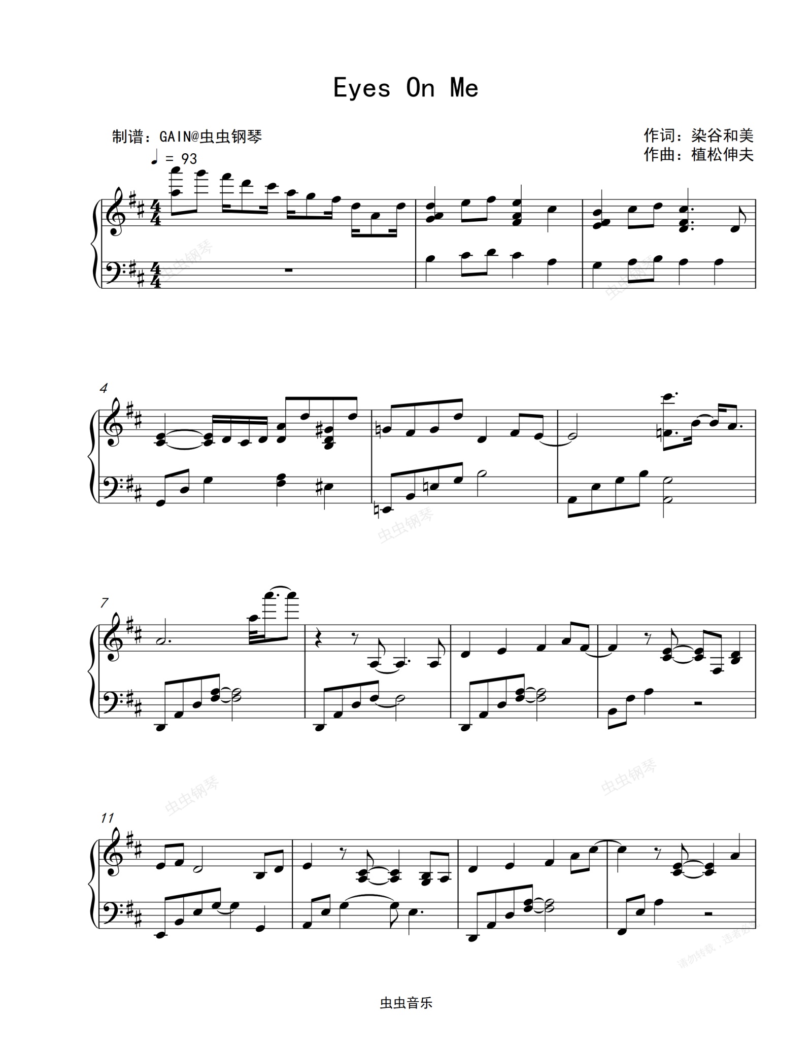 钢琴谱:Eyes-On-Me--王菲-最终幻想8-主题曲