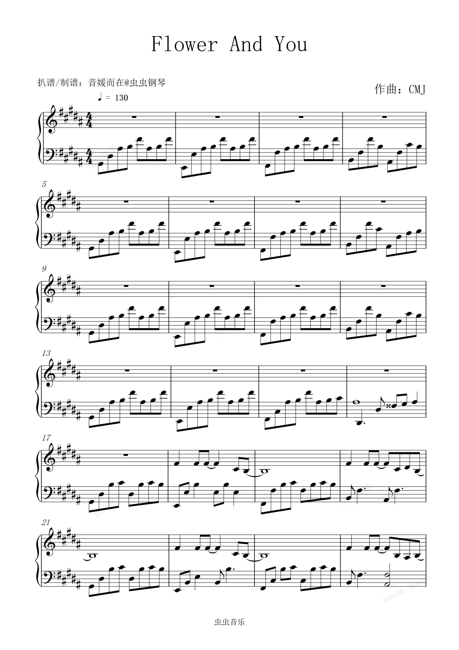 钢琴谱:Flower and You - CMJ 【钢琴轻音乐 | 舒缓音乐】