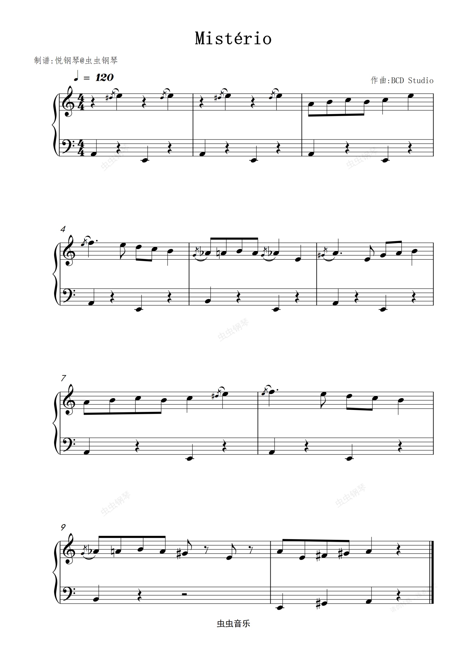钢琴谱:Mistério (幽默、搞笑视频的背景音乐)