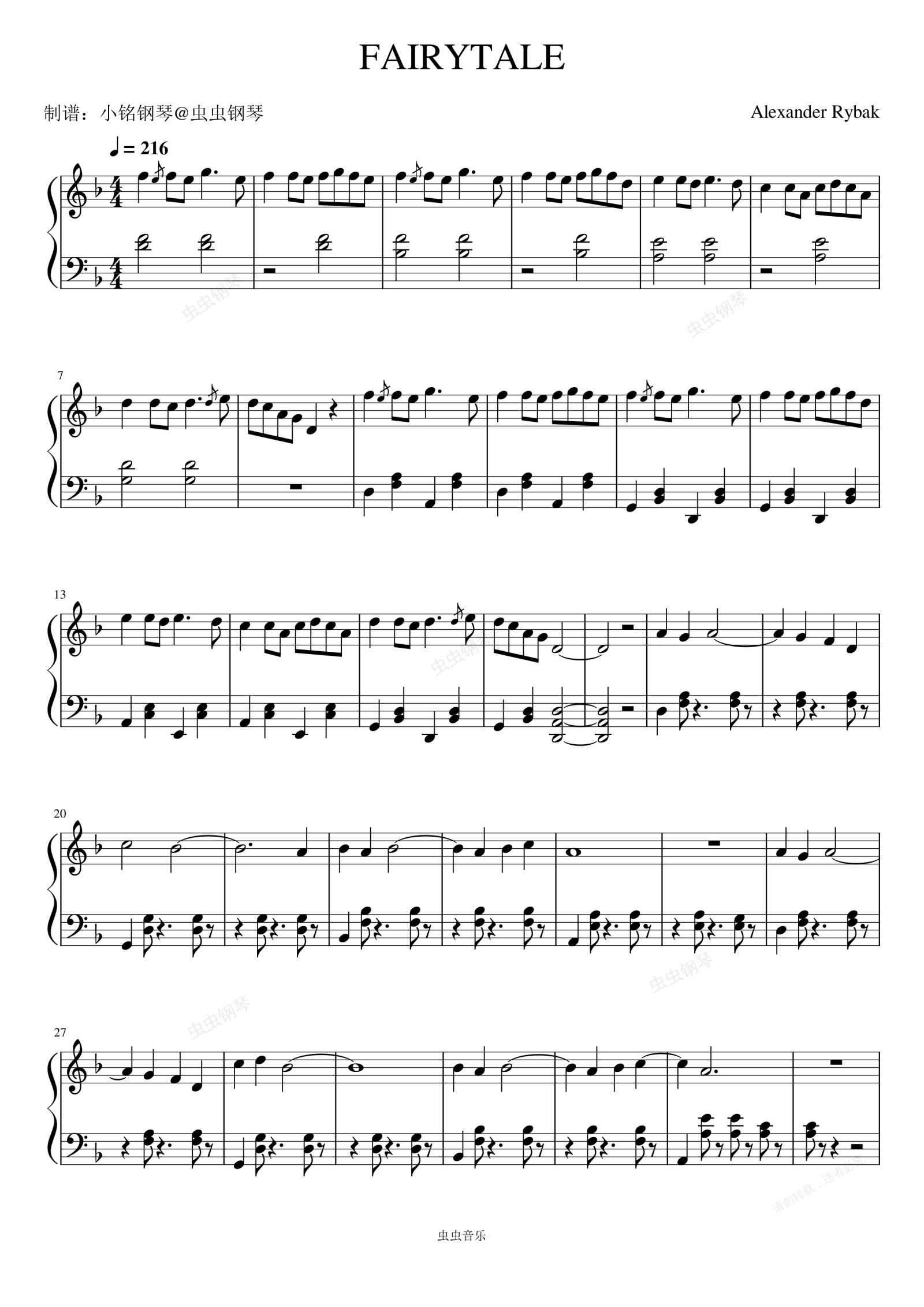 钢琴谱:FAIRYTALE - Alexander Rybak