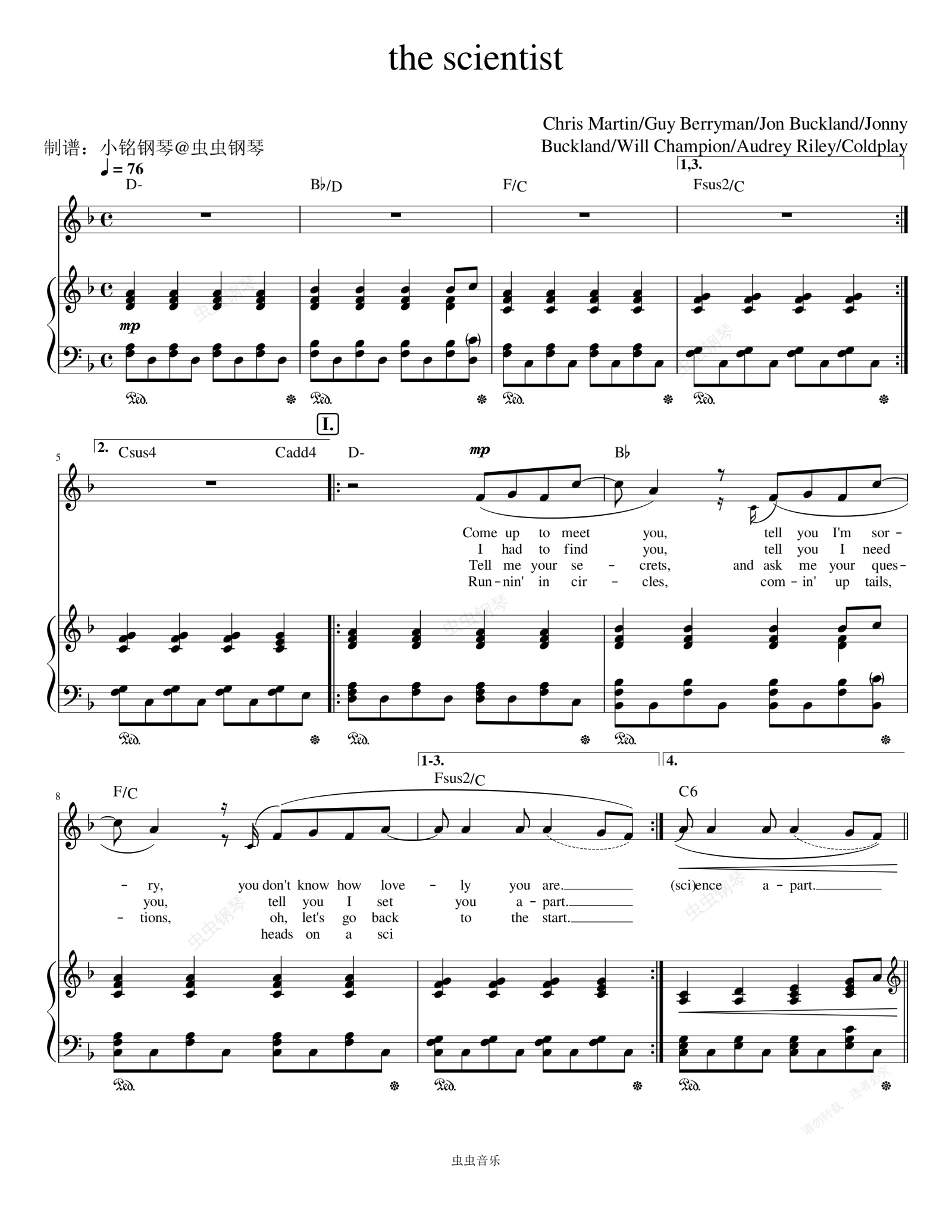 钢琴谱:The Scientist - Coldplay (酷玩乐队)