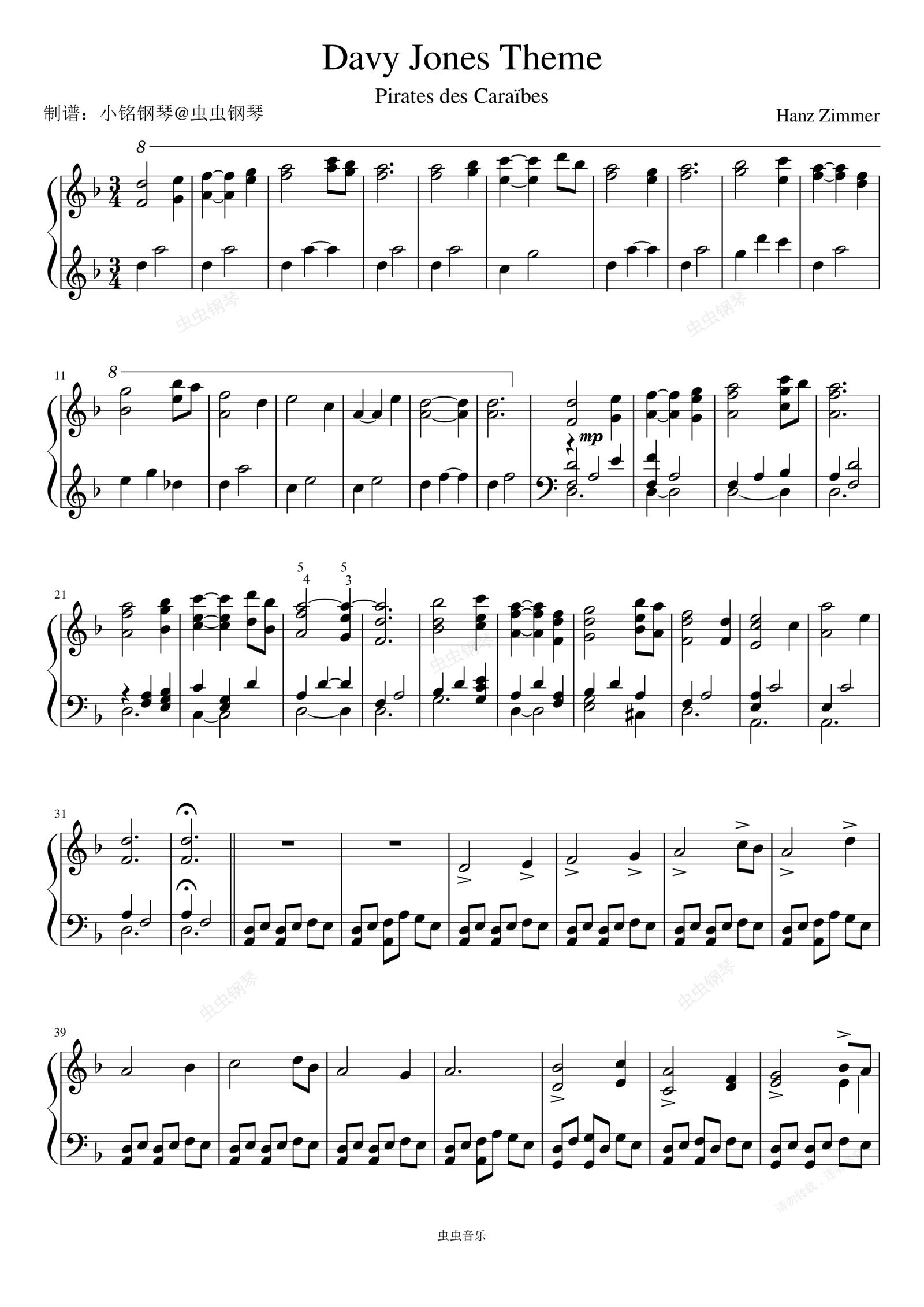 钢琴谱:Davy Jones Theme - Hanz Zimmer