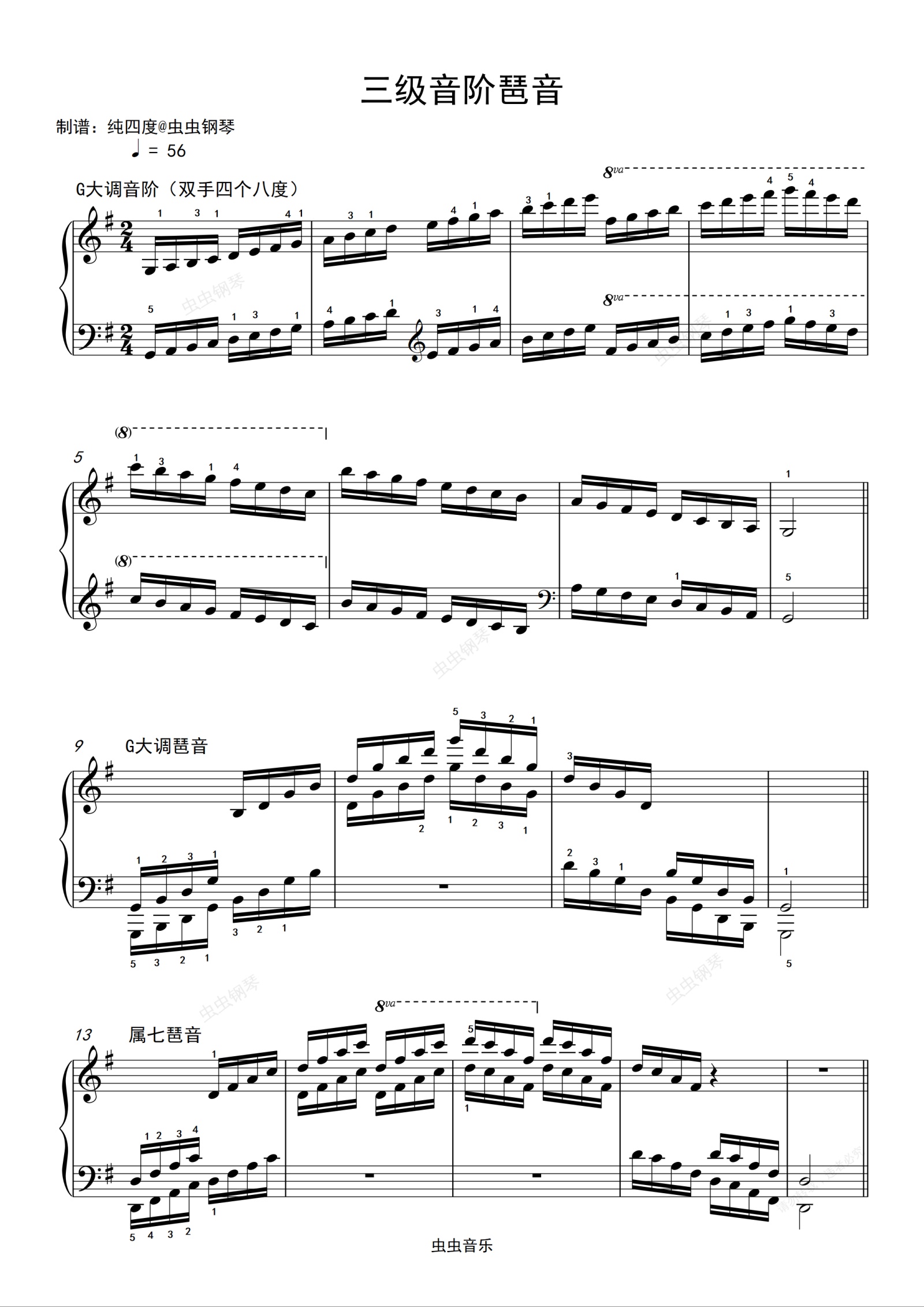 钢琴谱:钢琴三级考试G大调与e小调音阶琶音