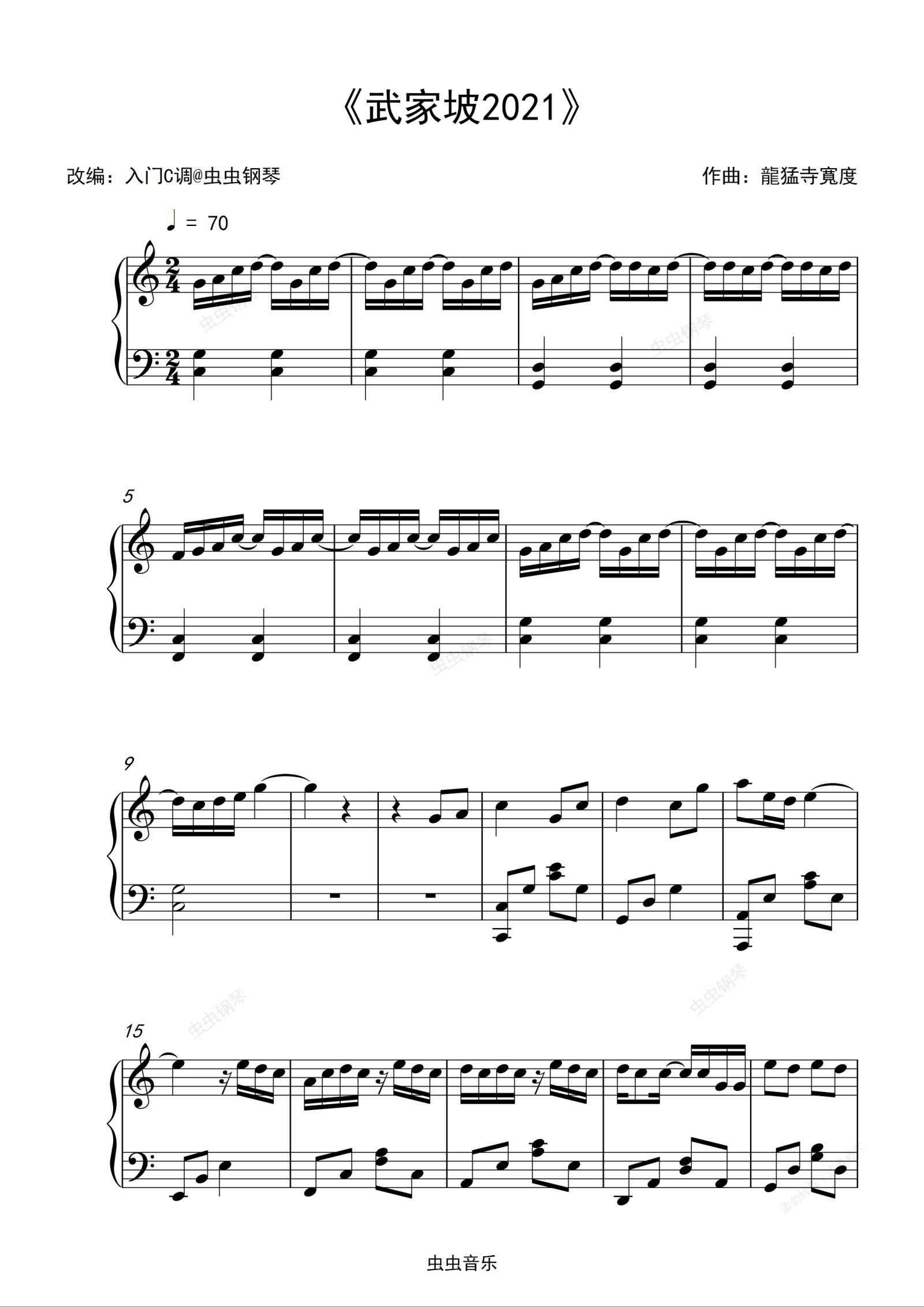 钢琴谱:《武家坡2021》入门C调简单版