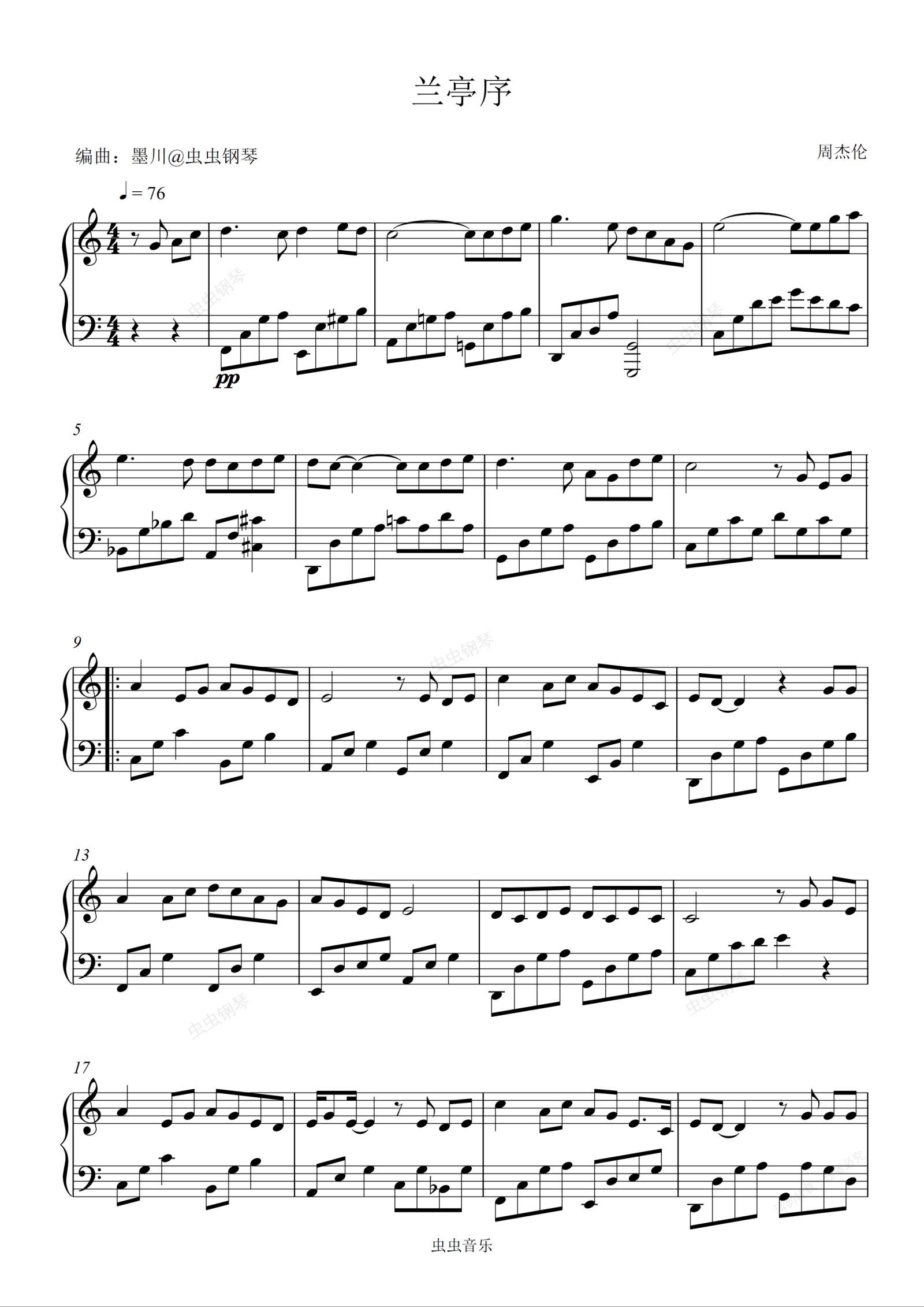 钢琴谱:兰亭序—周杰伦—C调简易